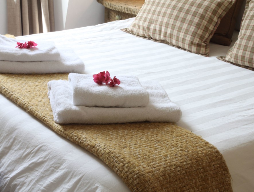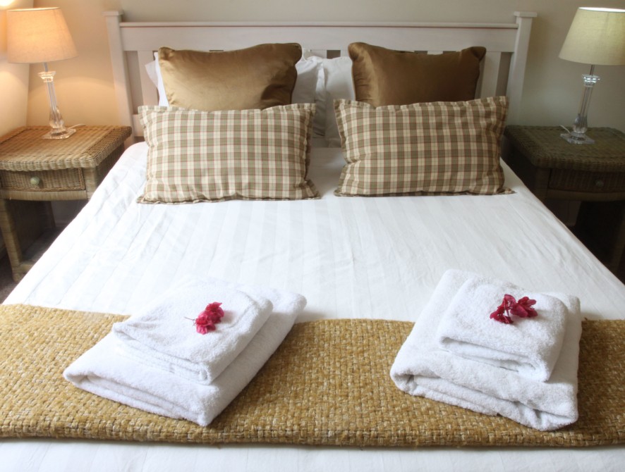 The spacious bathroom has a modern shower, corner bath and toilet and there is a separate guest toilet. The rooms are tastefully furnished with comfortable furniture. Good quality linen and bath towels are provided.