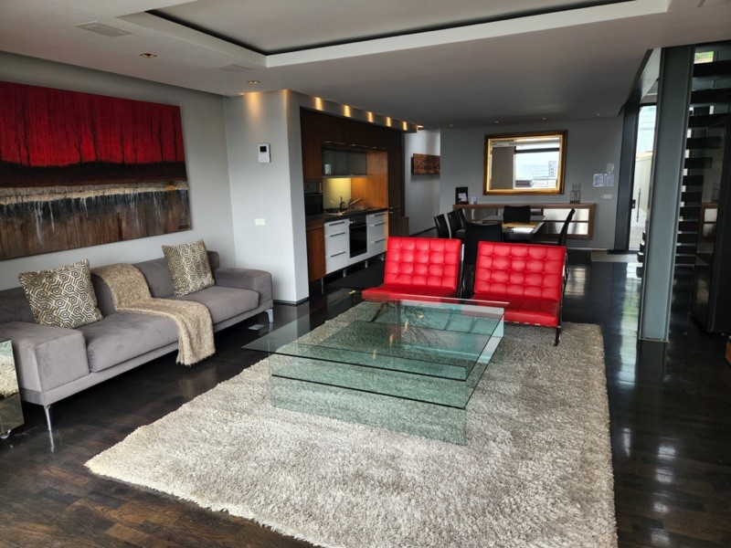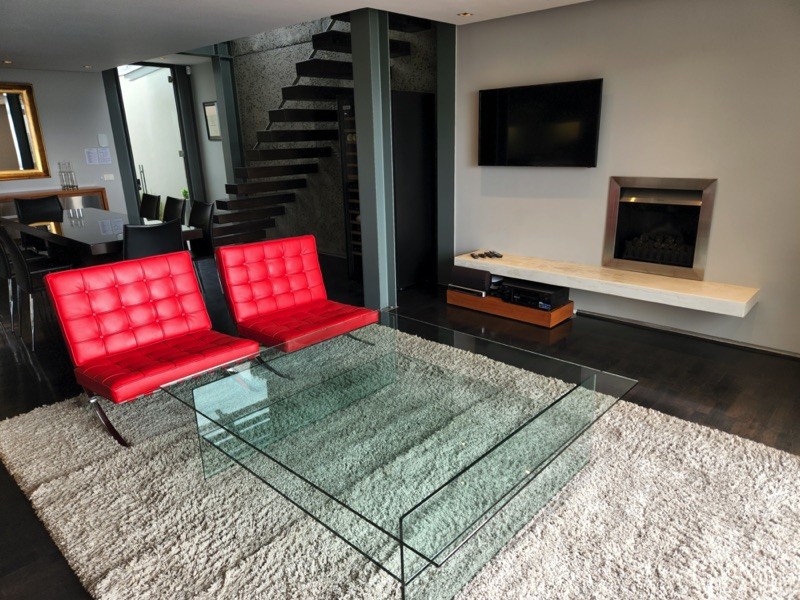 Designed to the highest standard this award winning contemporary property stretches from Loader Street, with secure garage, to Bayview Terrace with plunge pool and great views of the harbour and city. The ground floor consists of two air-conditioned bedrooms, one king/twin with en-suite shower and a queen with separate bathroom with shower.