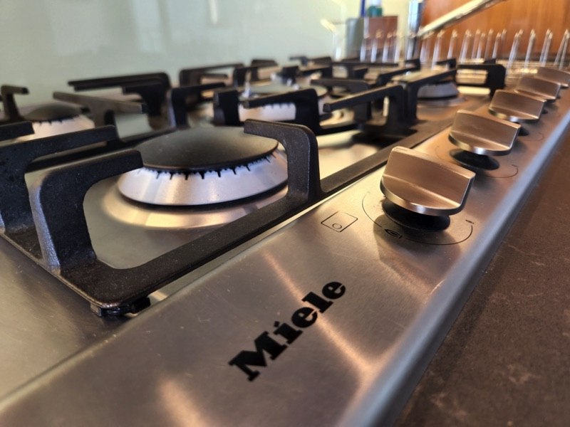 The open plan kitchen, dining area and living space with impressive ornamental gas fireplace opens out onto the small garden with seating and plunge pool. This area has views across to the harbour.