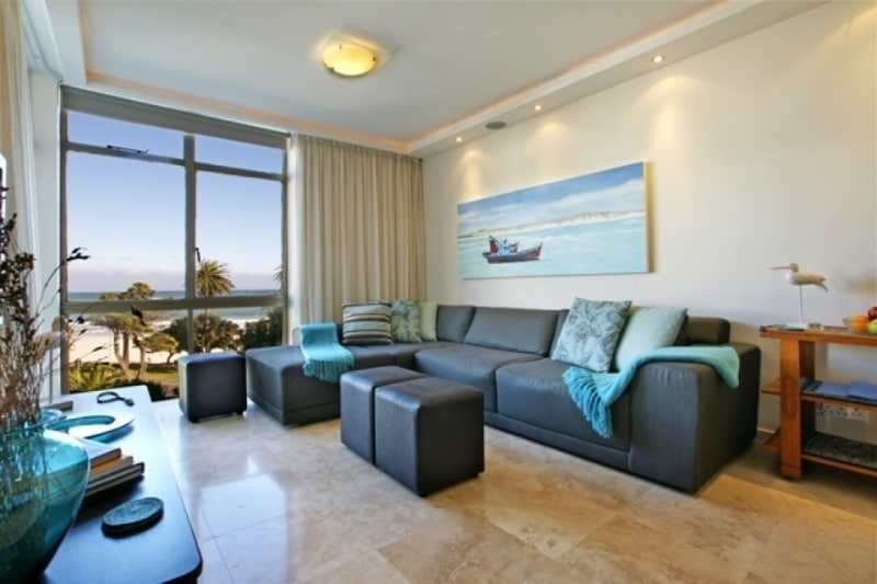 You enter the apartment through a entrance hall leading to an open-plan living area. A full-view window reveals a picturesque view of Camps Bay Beach. Doors open onto the balcony where you will find a cosy nook to enjoy a glass of wine whilst admiring the sunset.