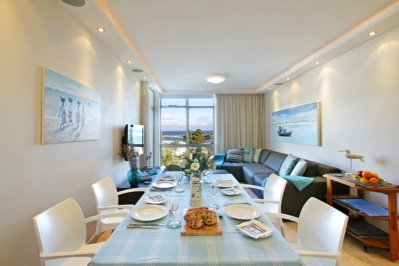 For entertainment, the living area is quipped with a flat screen TV, DSTV connection and DVD player. The indoor dining table seats six and the outdoor table seats four. The living area is fit with under floor heating.
