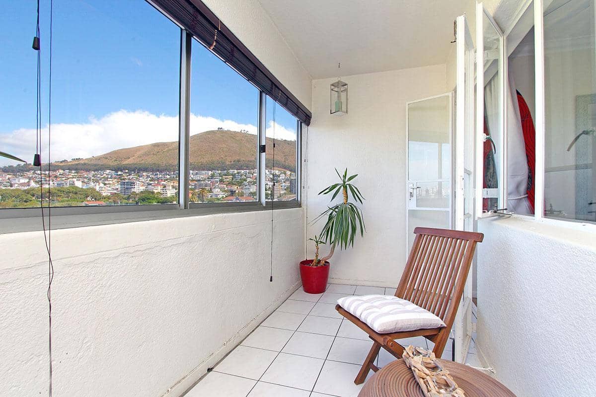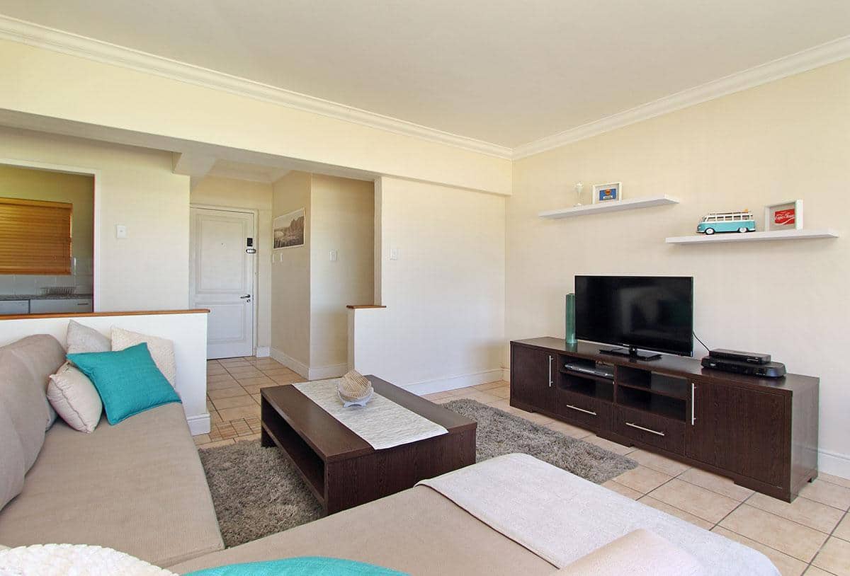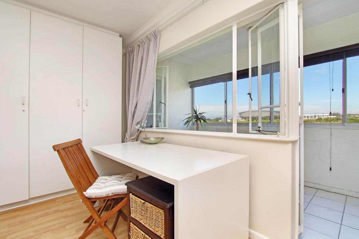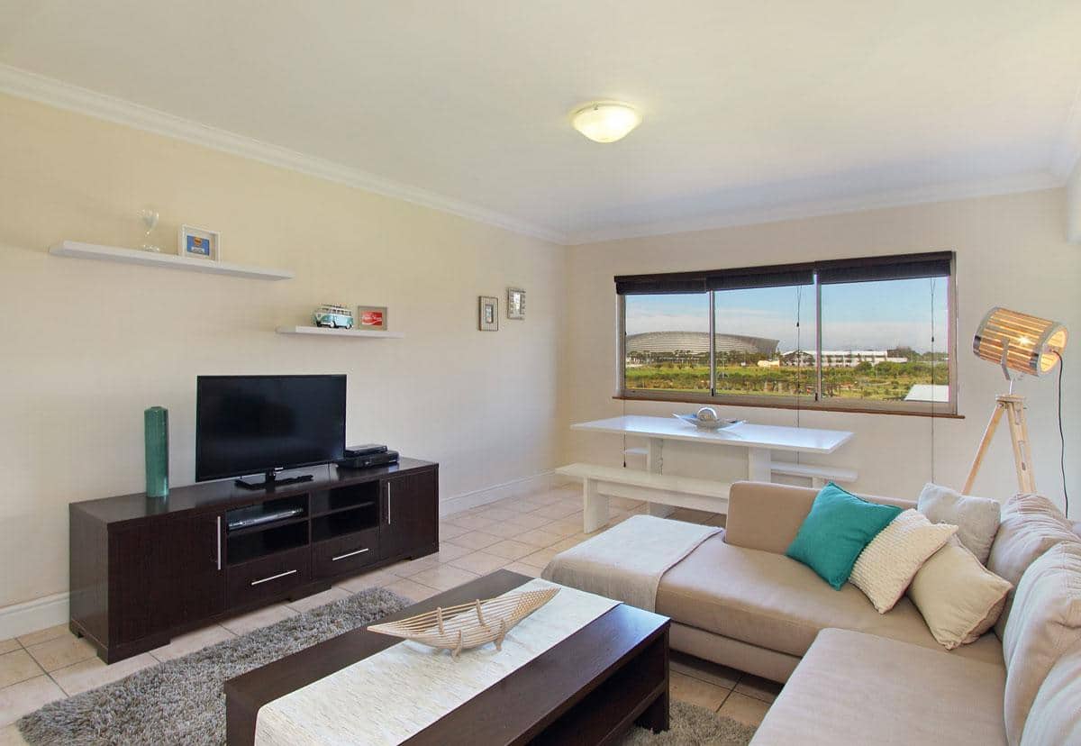 307 New Cumberland in Cape Town’s Mouille Point, offers a sunny 2 bedroom apartment with views extending over Green Point Stadium.