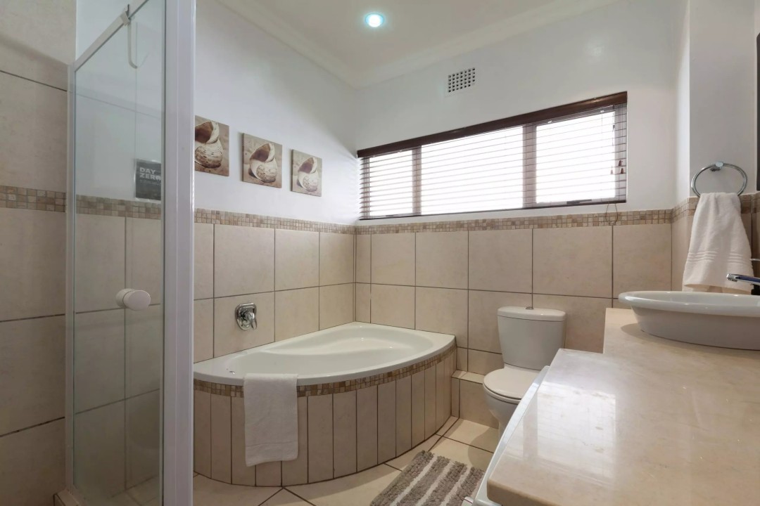- Bathroom with corner bath and spacious shower