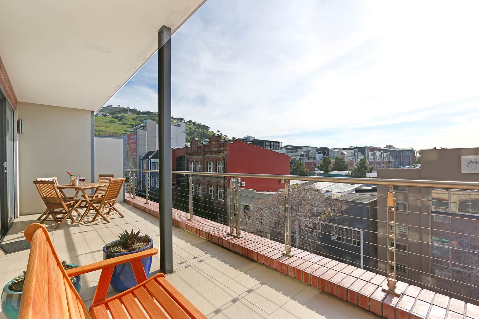 From its vantage point in the urban village of De Waterkant, 317 Rockwell offers a stylish, convenient lock up and go apartment just minutes away from the Waterfront. This two bedroom apartment is in each reach of the CBD, putting visitors close to all of the city’s attractions. Contemporary décor, modern furnishings, jaw-dropping views that span across the city and a four-star building that includes retail stores, coffee shops, indoor swimming pool and on-site fitness centre make this apartment a must for business and leisure travellers.