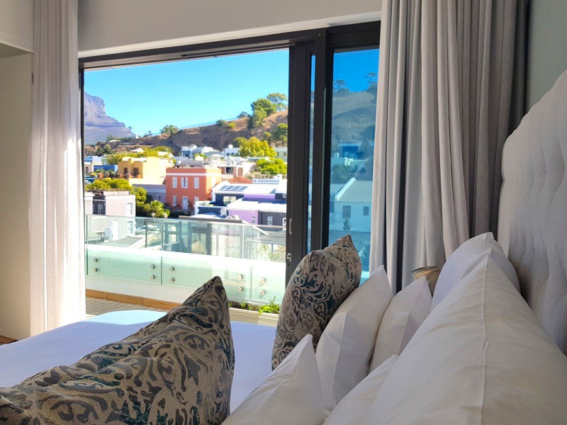 Bedroom 1, with en-suite bathroom, has village, city, Signal Hill and Table Mountain views plus its own balcony.