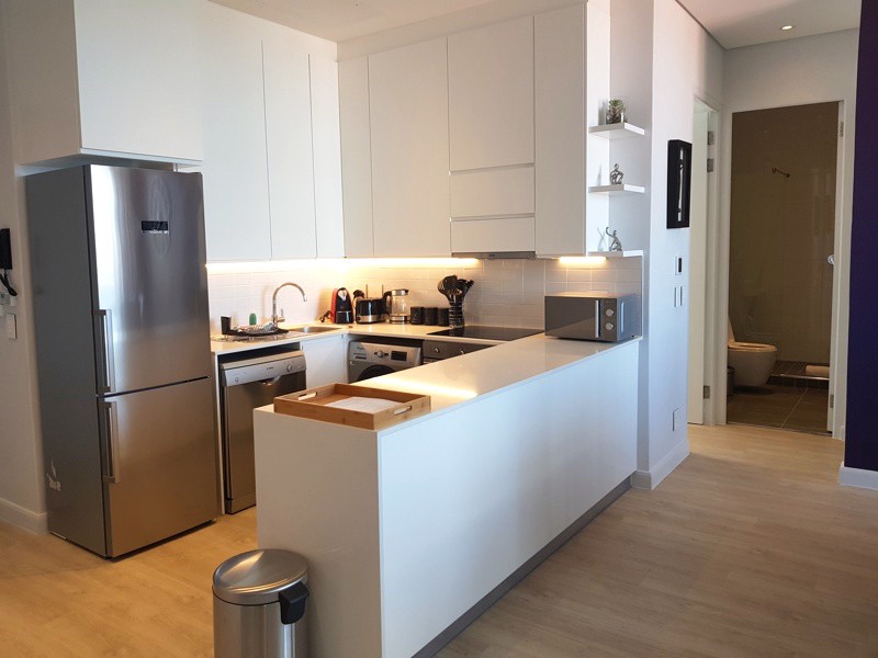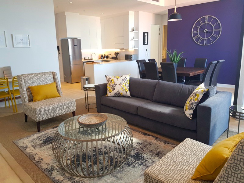 This brand-new apartment, along with its adjourning sister apartment, have been stylishly designed and boast one of the best locations in the area looking across De Waterkant Village and Signal Hill towards the city with clear complete Table Mountain views as well as harbour views in the other direction.