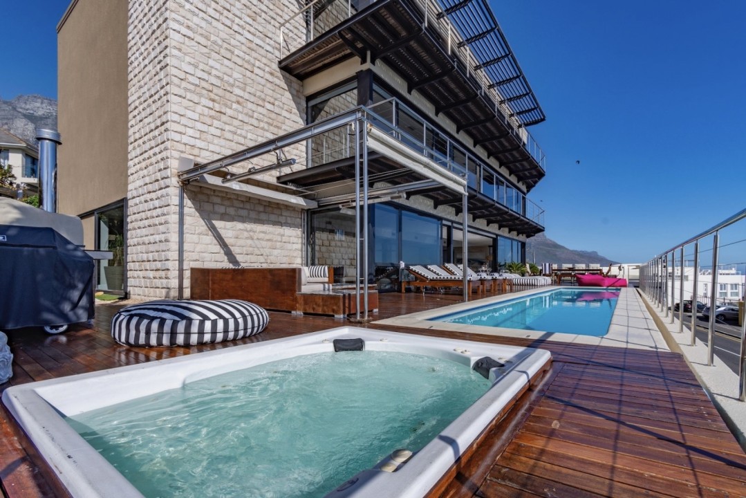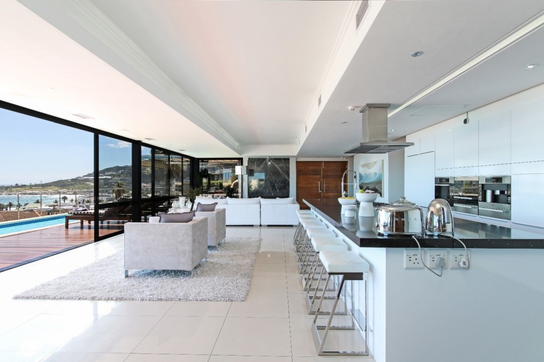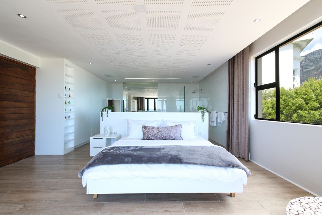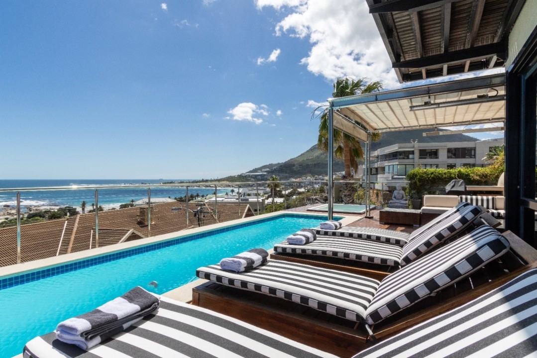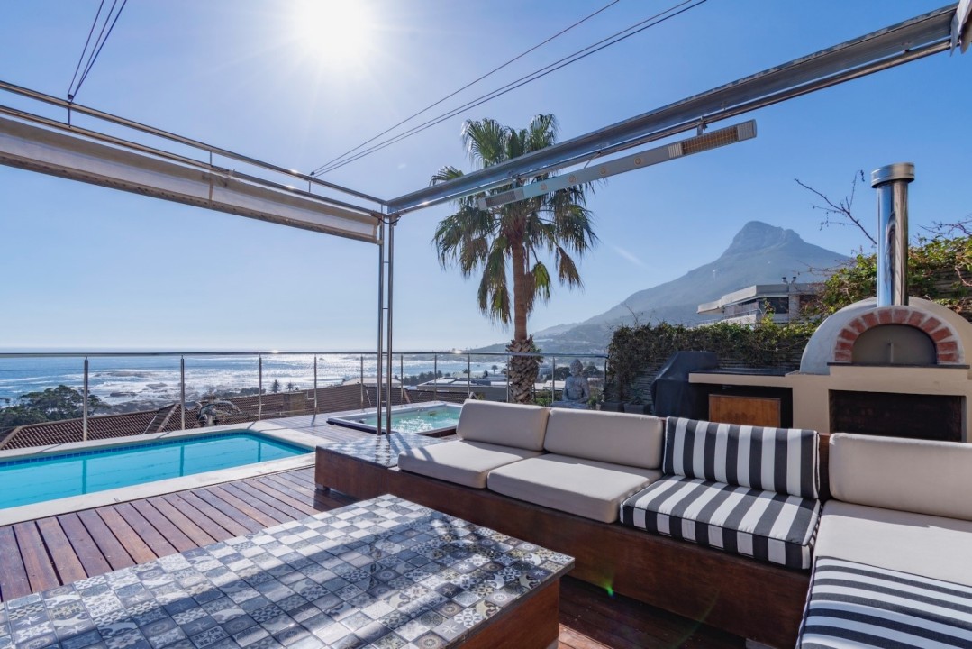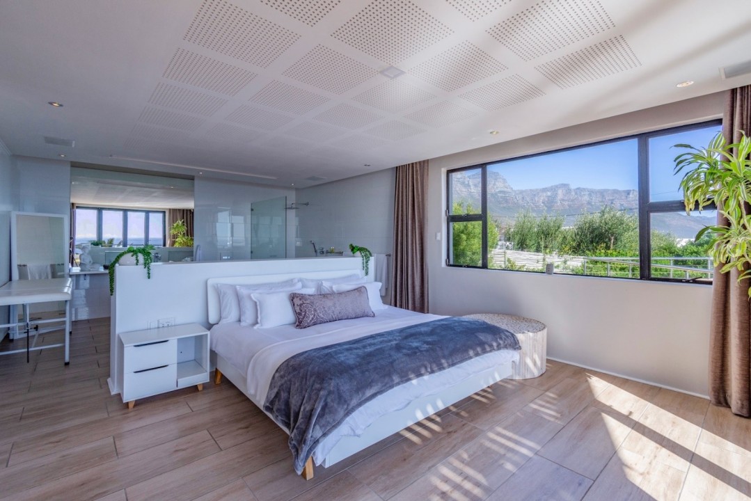This ultra-modern luxury home in Camps Bay has a breathtaking panoramic view over the Atlantic Ocean allowing for spectacular sunsets in the evening. You can enjoy views of Lionshead & Table Mountain’s Cable Car from the Jacuzzi. This apartment is very spacious and has lots of daylight and actually feels more like a free-standing home than an apartment. Perfectly located in a cosmopolitan seaside village, 2 min a walk to iconic white beaches and a vibey promenade with many restaurants and shops. The villa has 4 beautiful and spacious king bedrooms with private bathrooms, a TV, and mood lighting. The living and dining area is stylish and elegant and enjoys spectacular ocean views. Guests can enjoy Alexa home automation and complimentary Wi-Fi access. The Villa has an expansive entertainment area; an 18-meter lap pool, Jacuzzi, an outdoor dining and lounge area, a pizza oven, and a gas barbecue facility; a perfect area to relax and enjoy sun-downers, take in the panoramic views and unforgettable sunsets. The villa is best suited for families and close friends and is maintained for you by a complimentary daily housekeeper, from Monday till Saturday for 4 hours per day. The villa offers a tranquil workspace.