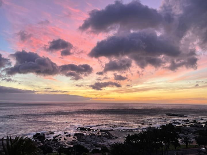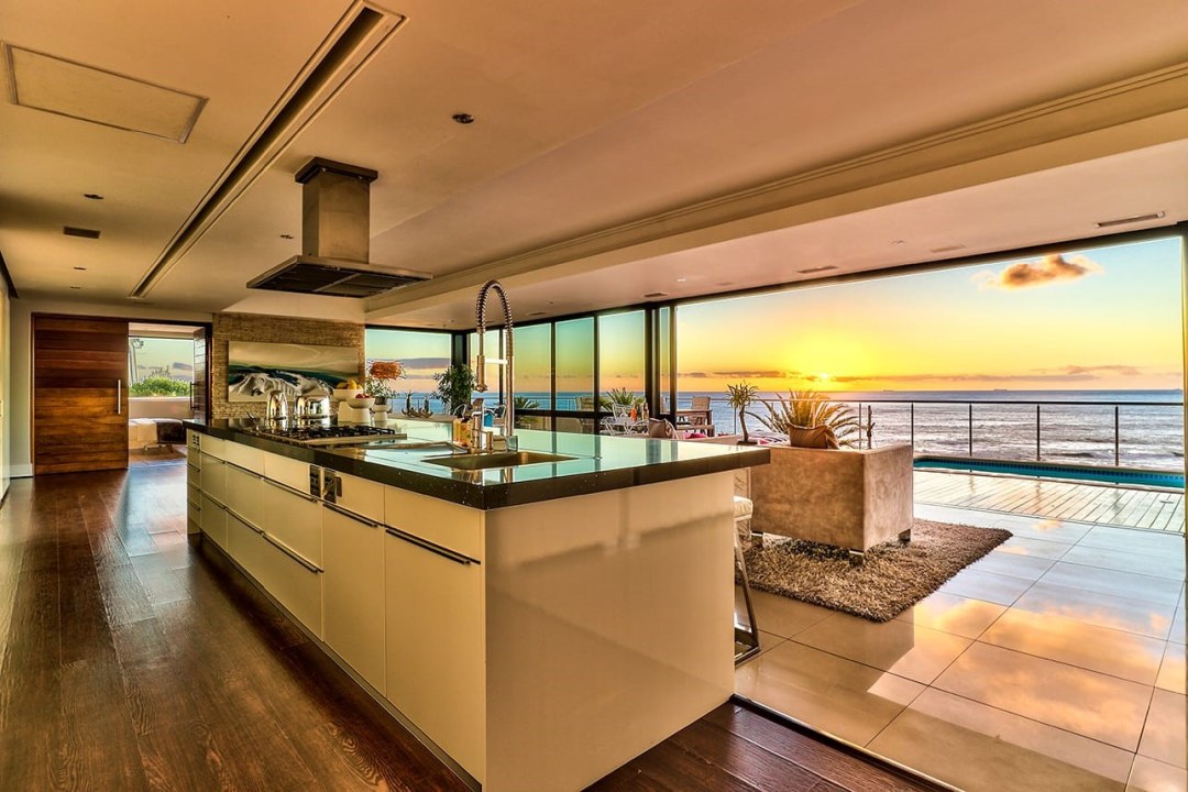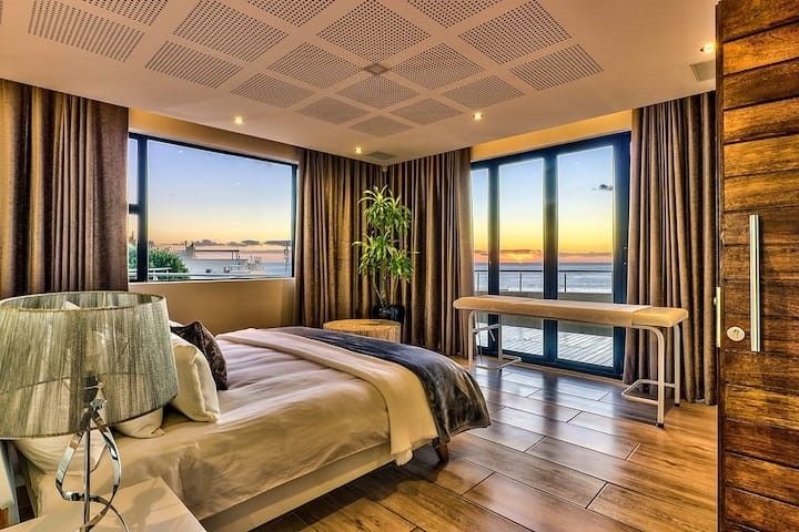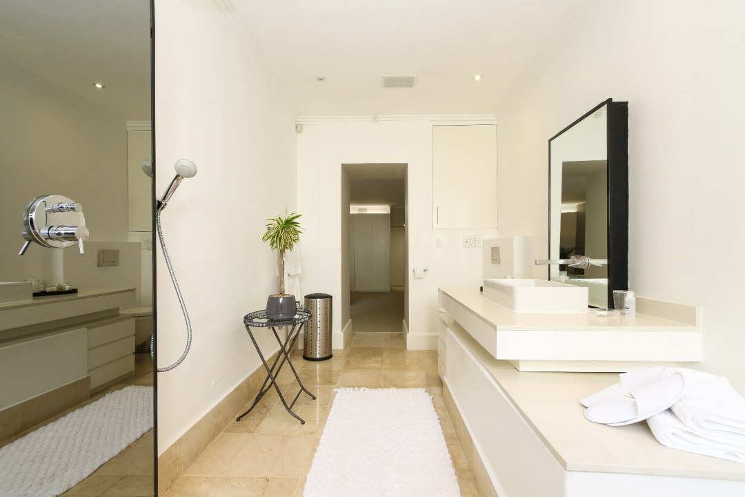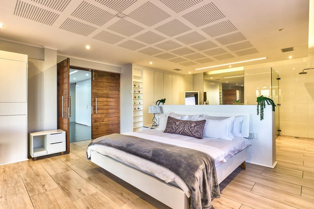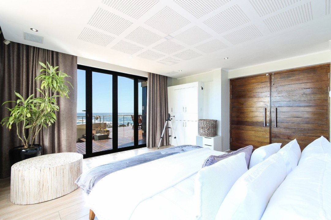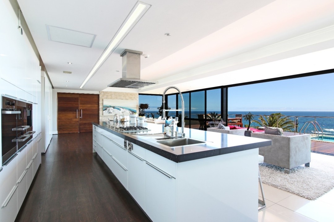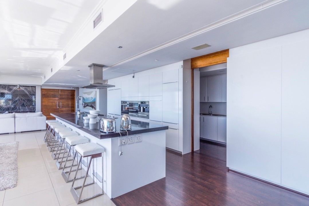 This ultra-modern luxury home in Camps Bay has a breathtaking panoramic view over the Atlantic Ocean allowing for spectacular sunsets in the evening. You can enjoy views of Lionshead & Table Mountain’s Cable Car from the Jacuzzi. This apartment is very spacious and has lots of daylight and actually feels more like a free-standing home than an apartment. Perfectly located in a cosmopolitan seaside village, 2 min a walk to iconic white beaches and a vibey promenade with many restaurants and shops. The villa has 4 beautiful and spacious king bedrooms with private bathrooms, a TV, and mood lighting. The living and dining area is stylish and elegant and enjoys spectacular ocean views. Guests can enjoy Alexa home automation and complimentary Wi-Fi access. The Villa has an expansive entertainment area; an 18-meter lap pool, Jacuzzi, an outdoor dining and lounge area, a pizza oven, and a gas barbecue facility; a perfect area to relax and enjoy sun-downers, take in the panoramic views and unforgettable sunsets. The villa is best suited for families and close friends and is maintained for you by a complimentary daily housekeeper, from Monday till Saturday for 4 hours per day. The villa offers a tranquil workspace.