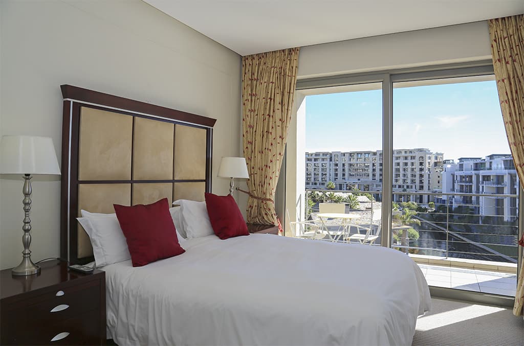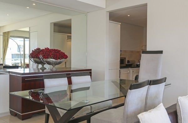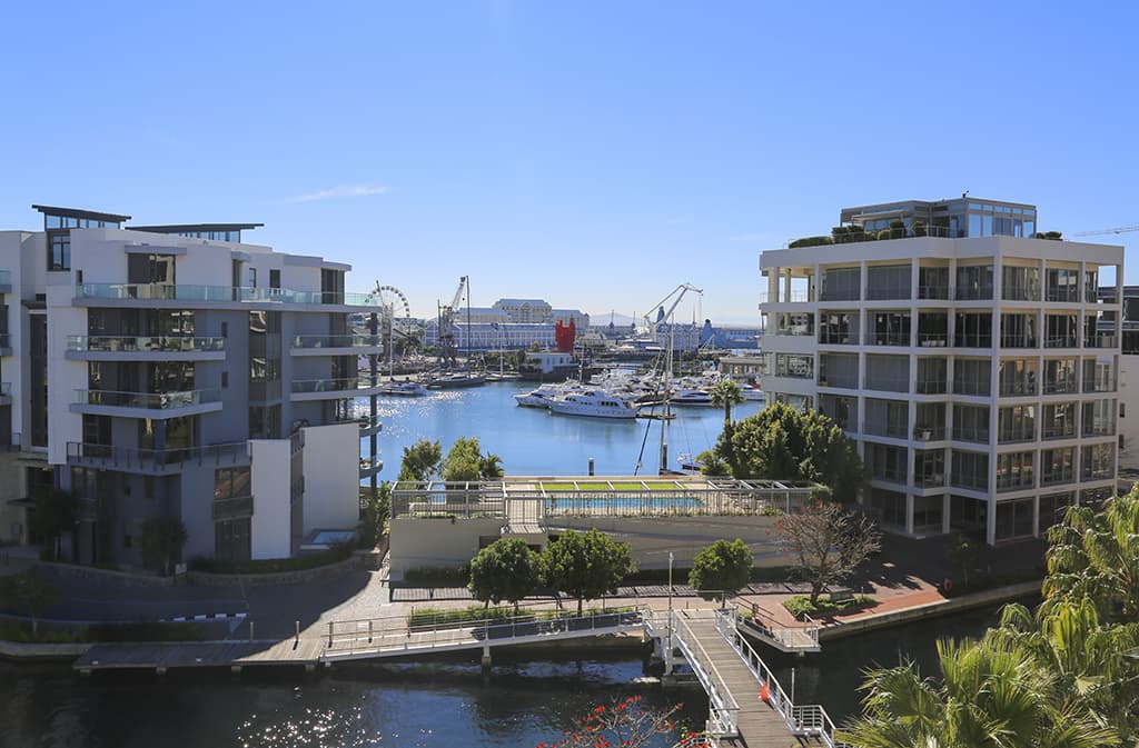 This sunny waterfront apartment focuses on indoor-outdoor living. It is especially popular since both bedrooms open onto a full-length terrace with spectacular views of the canal and yacht basin. The lounge opens onto the undercover patio providing secluded outdoor living where one can enjoy a sundowner while watching the rowers on the canals and the yachts sailing into the yacht basin. There is easy access to the 5 communal pools which offer loungers and umbrellas to enjoy the sun and marina lifestyle.