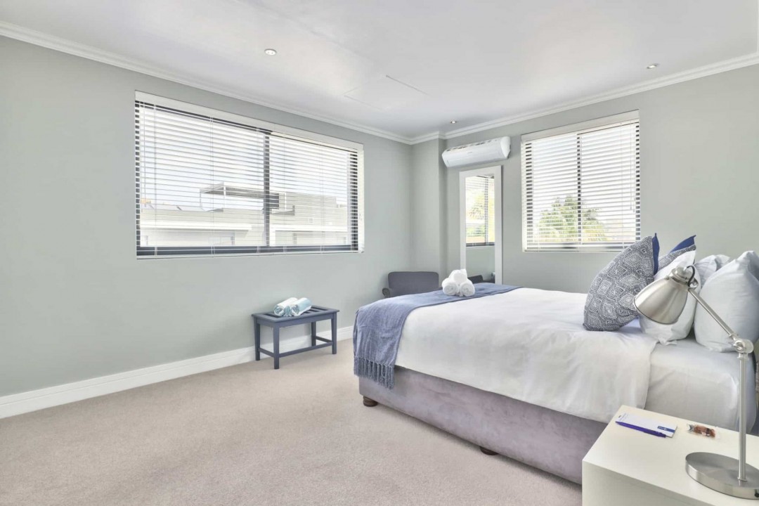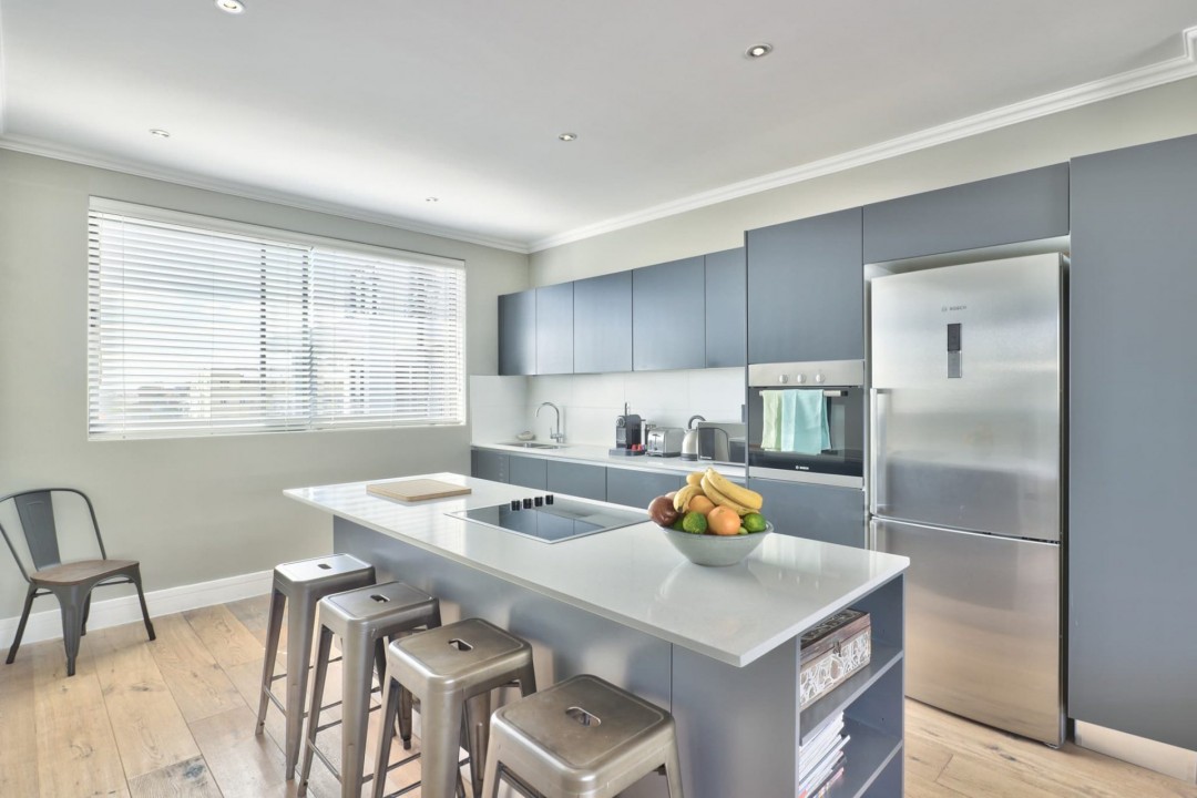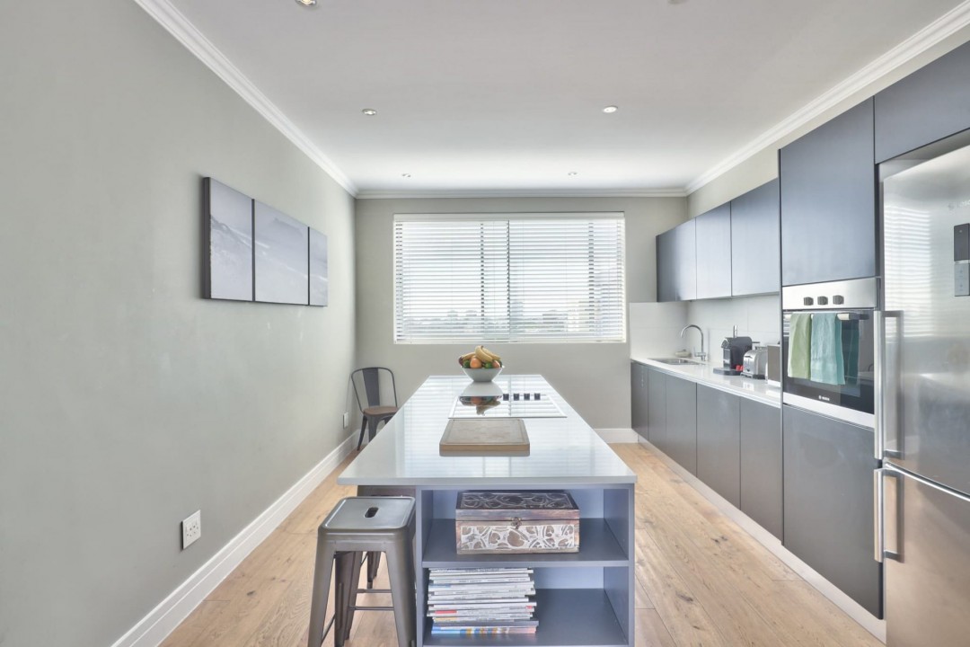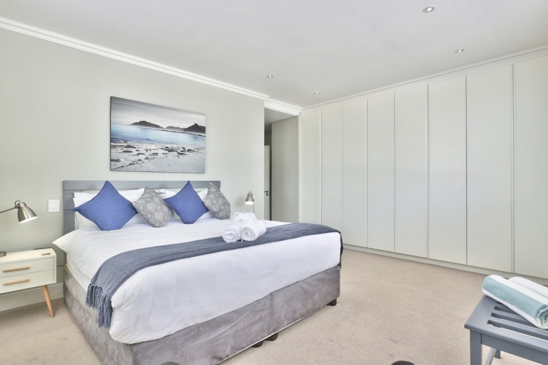 The two-bedroom apartment is situated on the ground floor of the block and has a lovely patio garden with an outdoor dining table and views of Lion’s Head. The three-bedroom apartment is found on the top floor of the block and has a covered balcony with lounge chairs and a table and an upper viewing deck with a gas braai, prep basin, lounge chairs, and an eight-seater dining table for outdoor dining and entertainment.