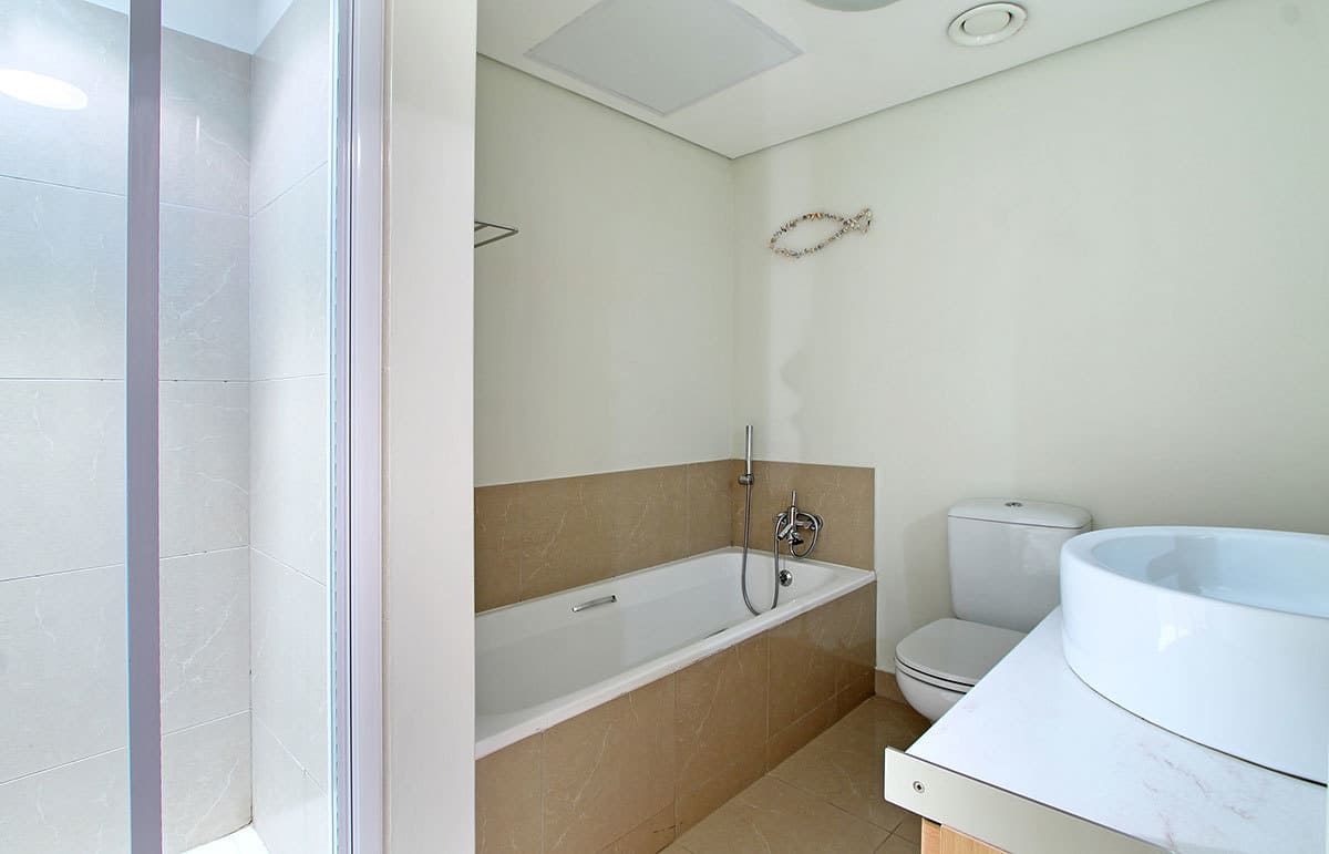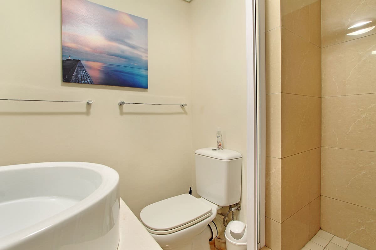 This well-appointed and stylishly decorated home-away-from-home features three bedrooms and two bathrooms. The main bedroom is en suite with a bathroom containing a bath and shower. The main and second bedrooms are ideal for couples while the third bedroom, with twin beds, is suitable for friends or children. The second and third bedrooms share a separate bathroom that comes with a shower.