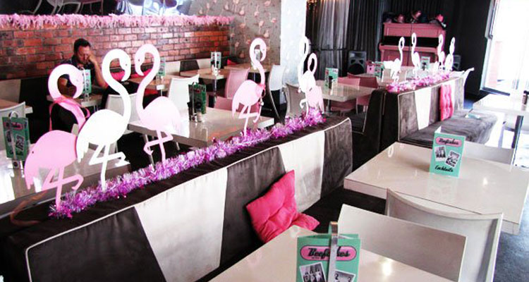 Beefcakes is a chic Cape Town restaurant inspired by the 50’s and serves amazing burgers. Order the “Buffy the Hamburger Slayer” that comes with cheddar and a huge amount of bacon. You can also order the popular “Chilli on the Willy Burger”. The interior is quite fascinating with disco balls, flamingo wallpaper, and a pink piano located on the stage.