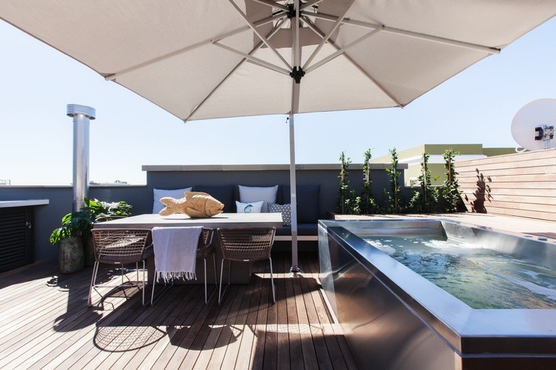 Cleverly designed this stylish contemporary property, with corner aspect views looking down Dixon Street, has an open plan living space, hot tub and two bedrooms.