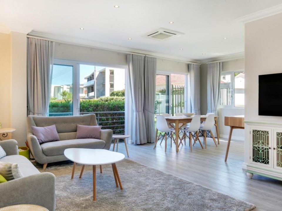 The interior of this luxurious apartment is truly stunning and every detail has been carefully considered, from the trendy furnishings to the beautiful artworks which adorn the walls. In the living room is a TV lounge, with full bouquet of DSTV and two couches where you can relax in comfort while watching your favourite show. The lounge leads into an open plan kitchen that is fully equipped with all the necessities. There is seating for two guests at the kitchen counter and further dining for 6 around the corner. Sliding doors lead outside into a small garden. The main bedroom has a King-size bed, en-suite bathroom and a TV and the second bedroom has a Kings -size bed which can be converted into two twin beds, en-suite bathroom and a TV. Both rooms also have sliding doors and Juliette balconies. The property has a Garage with automatic doors and direct access to unit plus off street parking. Whether you stay for a few days or a few weeks, you are sure to feel right at home in this stylish apartment. Just a 100 metres from the beach and within easy walking distance to restaurants and theatre, there is something for everyone to enjoy close by.