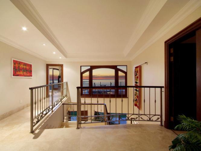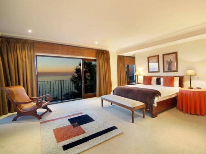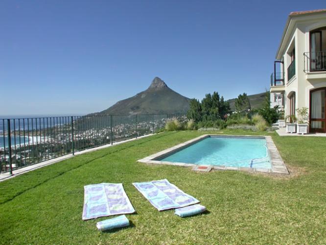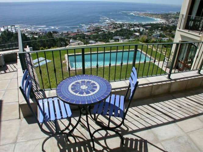 Abaco Villa has been designed in such a way as to take full advantage of these breathtaking views – three of the five bedrooms are positioned upstairs, all offering access onto the central balcony which boasts unbelievably gorgeous views of the Camps Bay coastline and the majestic surrounding Cape Town mountainside. The two downstairs bedrooms open onto a private garden, which again has unrivalled views. The large manicured garden and pool areas are built above a 7 metre wall, and therefore offer completely unobstructed sea views from this unique position on Camps Bays hillside. Behind the villa is access directly onto the Twelve Apostles mountainside and Table Mountain National Park, for wonderful scenic walks with more awe-inspiring views of the coastline.