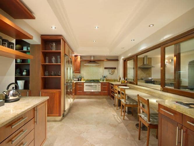 Abaco Villa is the epitome of upmarket luxury – featuring travertine floors, granite and marble finishes, and Jarrah and Teak wood furnishings throughout this sublime Cape Town holiday villa. The living and dining areas downstairs are spacious and luxurious, offering first-class quality and comfort. For sumptuous gourmet catering, the fully equipped designer kitchen offers ample space and features a semi open-plan breakfast bar overlooking the outdoor patio. For the sun worshippers, this wonderful luxury villa features a delightful, landscaped garden with a large, sparkling saltwater pool for private bathing on those sizzling Cape Town summer days away from the hustle and bustle of Camps Bay beachfront.