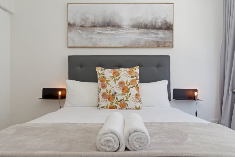 Both bedrooms are designed for restful sleep, with plush bedding and ample storage. The sleek bathroom features a walk-in shower for added comfort. High-speed WiFi ensures easy remote work or streaming, while secure building access and a private lock-up garage provide peace of mind throughout your stay.