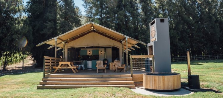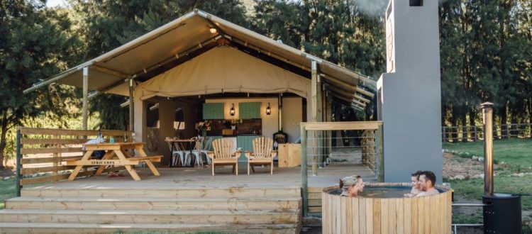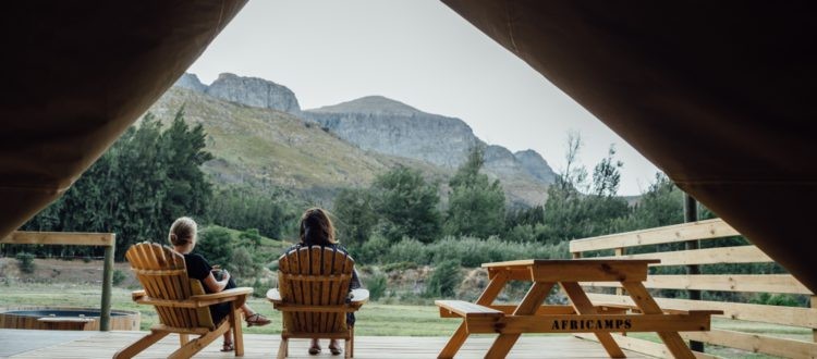 Our 6 AfriCamps luxury glamping tents are surrounded by vineyards, the Kromme River that runs through the farm and glorious mountain views – best enjoyed while soaking in your outdoor wood-fired hot tub.