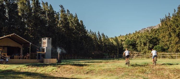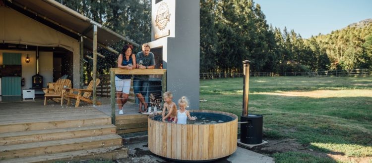 Activities on the estate include a 5km vineyard hike, the river walk that leads you all along the Kromme River, mountain bike trails that start on the property, a kids mountain bike trail, the gorgeous wine tasting room where you can try some of the estate’s award-winning wines along with a platter or lunch and, of course, the outdoor wood-fired hot tub next to your tent. You can also enjoy a selection of spa treatments from the comfort and privacy of your own tent. Off the property, explore the surrounding area’s popular mountain bike trails, hiking trails and fly-fishing in the Limietberg Nature Reserve, horse riding, touring between various Wellington wine farms and distilleries and world-class golf courses.