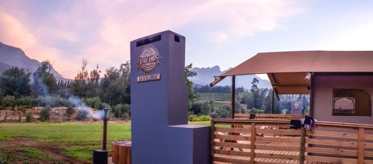 At long last – a glamping location in the Cape Winelands! Located beneath the historic Bainskloof Pass at the foothills of the Groenberg Mountain Range, AfriCamps at Doolhof is set within the award-winning Doolhof Wine Estate, a short drive from the picturesque town of Wellington and only 50 minutes from Cape Town.