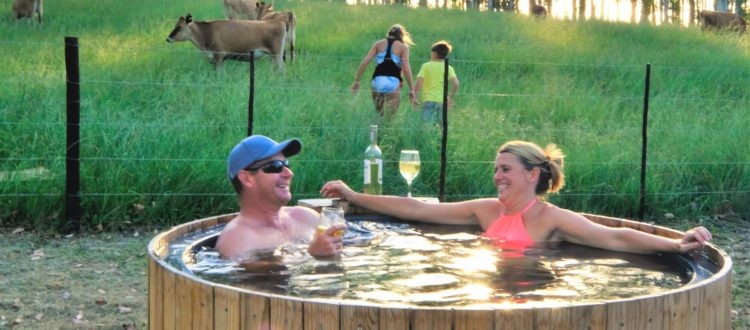 At Oakhurst there is no shortage of healthy outdoor fun to keep you and your kids busy. The tents are situated next to one of three farm dams. Try your luck at a spot of fishing or take out one of the canoes. Each tent has their own outdoor wood-fired hot tub. Soak up the views of the Outeniqua mountains in the distance from your own private outdoor wood-fired hot tub. It’s the purest form of relaxation, while taking in the beautiful surroundings. On hot summer days, use the tub as a splash pool! Kilometres of well-maintained single track through the forest is ideal for mountain biking or trail running and the farm’s majestic waterfall makes for an adventurous forest hike. The kids can visit Oakhurst Dairy to watch cows being milked and calves being fed in their feeding camps either early morning or afternoon.