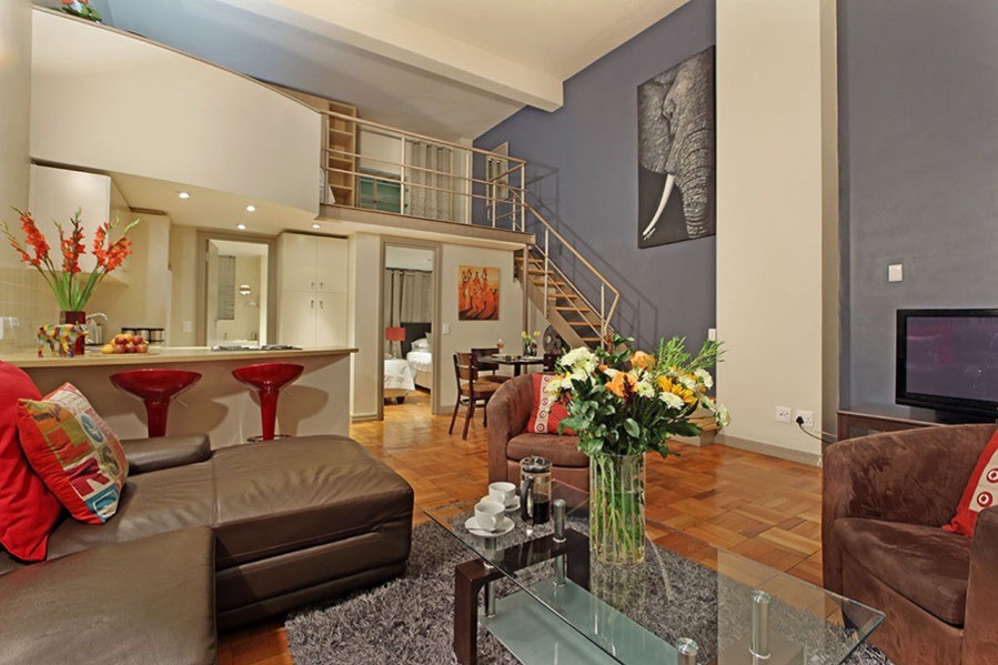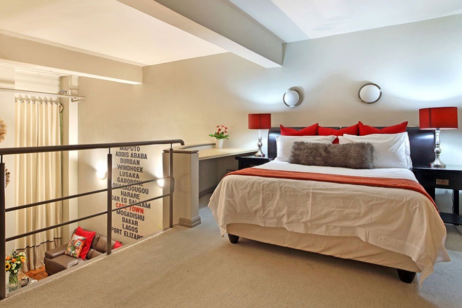 The queen-size loft bedroom is upstairs, with a balcony to look down over the lounge. AfriNest has a large TV with international channels and Free Wifi.