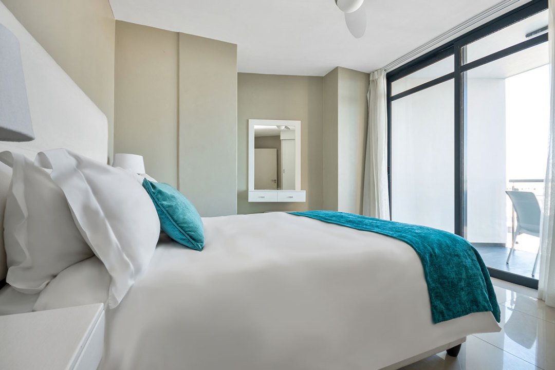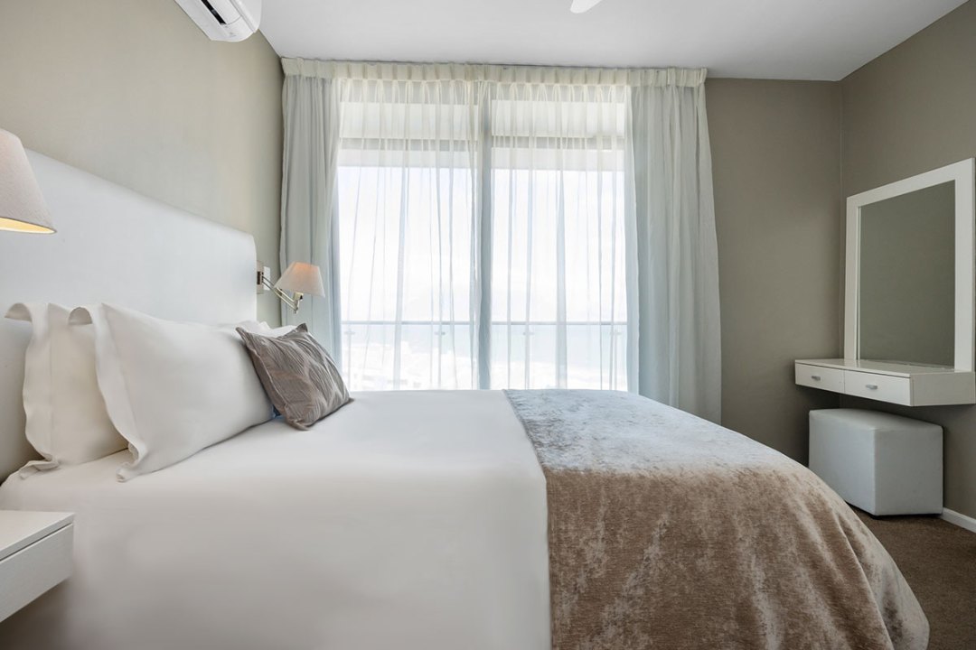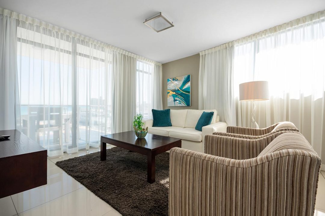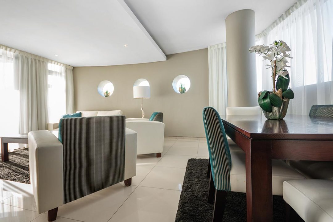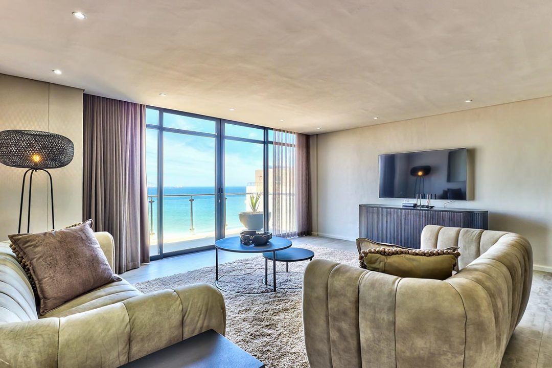 Our Three Bedroom Luxury Suites with their modern beach-inspired décor and luxurious finishes are well equipped for families or a group of friends looking to enjoy a beach and city getaway. Guests can choose between a 5- or 6-sleeper suite. Each suite has a luxurious lounge area, a fully equipped kitchenette, plus a beautiful balcony where you can soak up the glorious sea views. This is the perfect place to enjoy a morning cup of coffee or a sundowner at the end of the day.