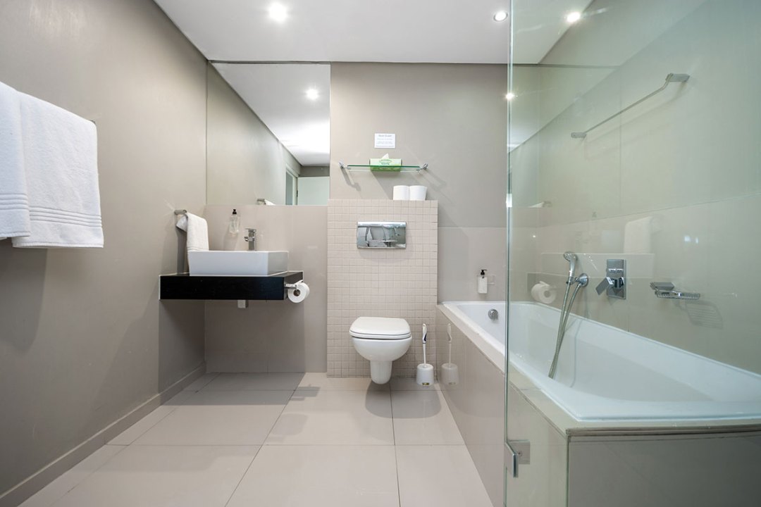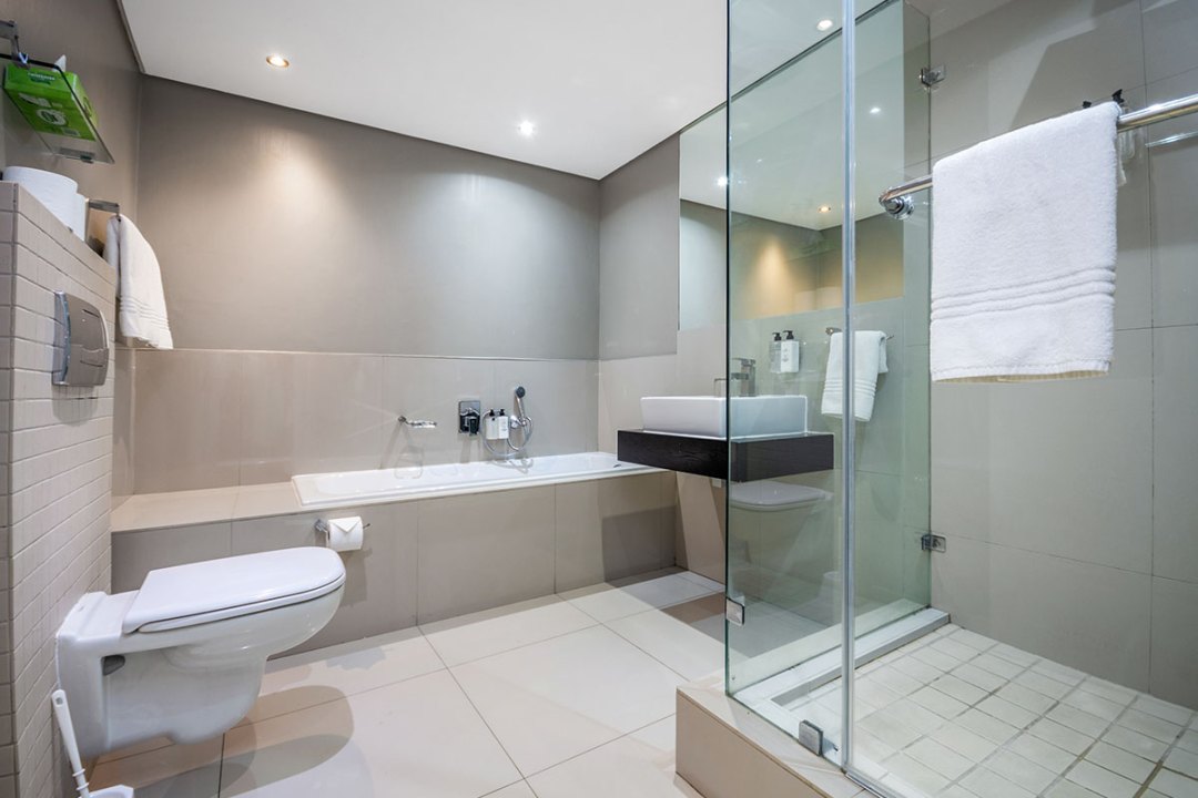Enjoy a good night’s rest after a busy day of work or play in your elegantly furnished bedroom with quality beds, luxury linens, and contemporary finishes. The Premium Suite has two bedrooms with double beds and the third bedroom has two three-quarter beds. The one bedroom has an en suite bathroom with a shower, while the second bathroom has both a shower and a bath. Both bathrooms are spacious with quality modern fittings.