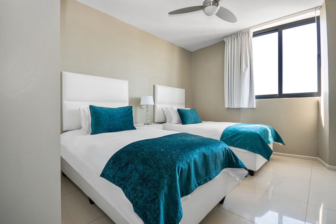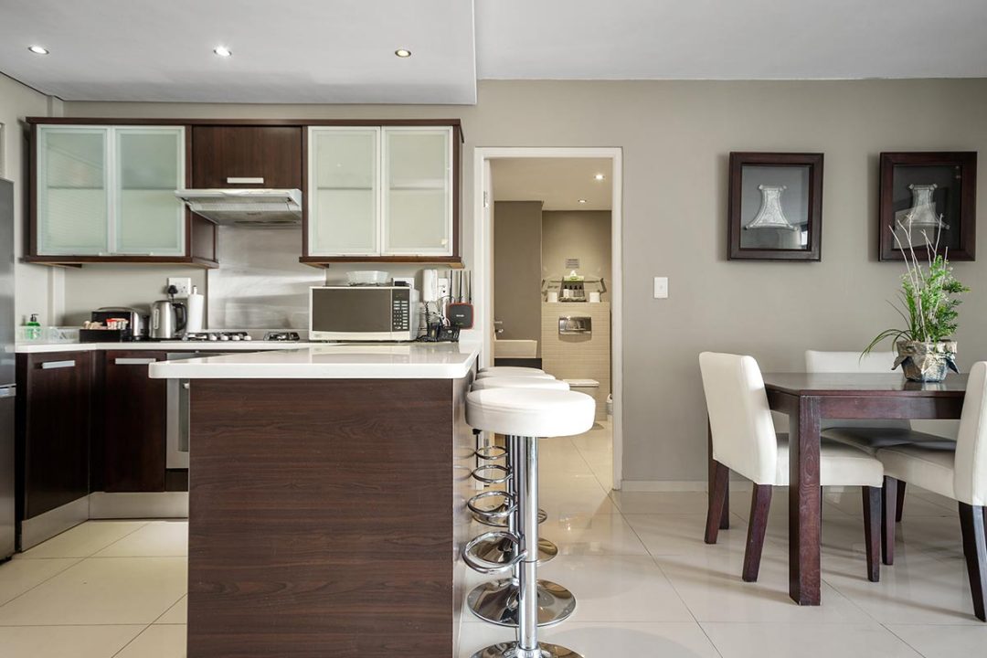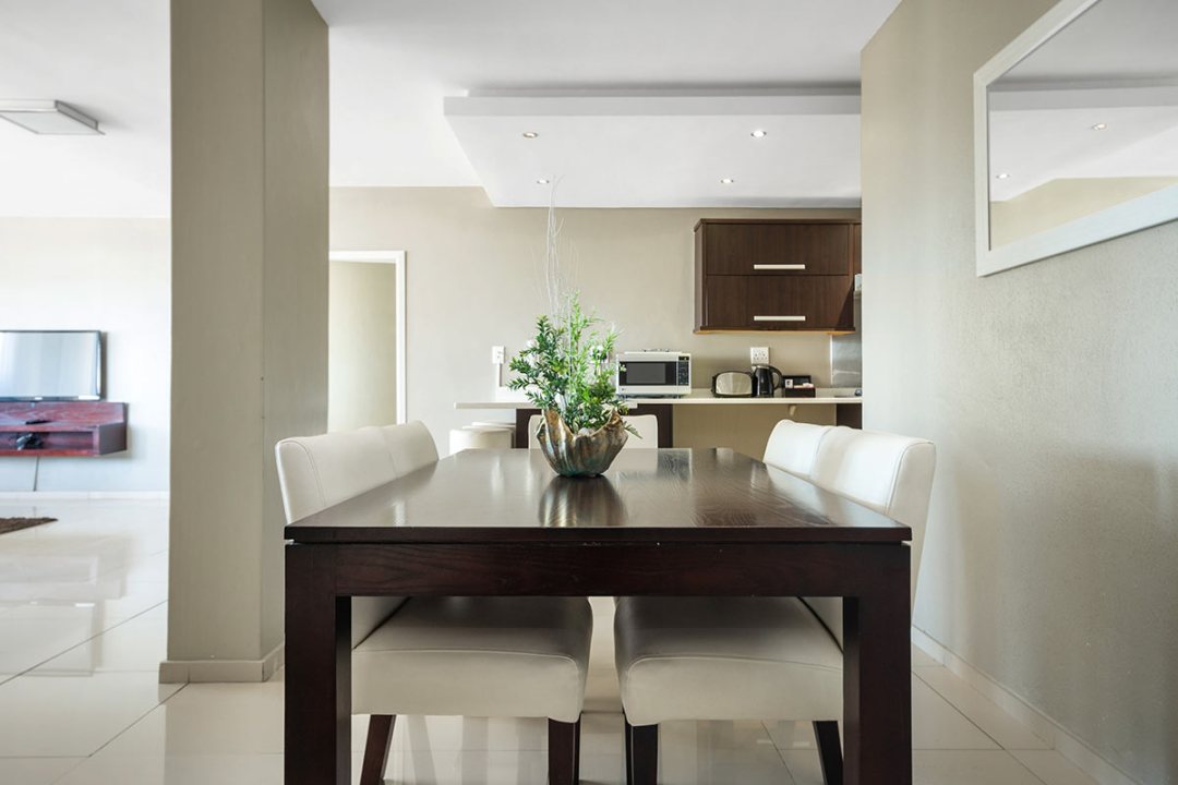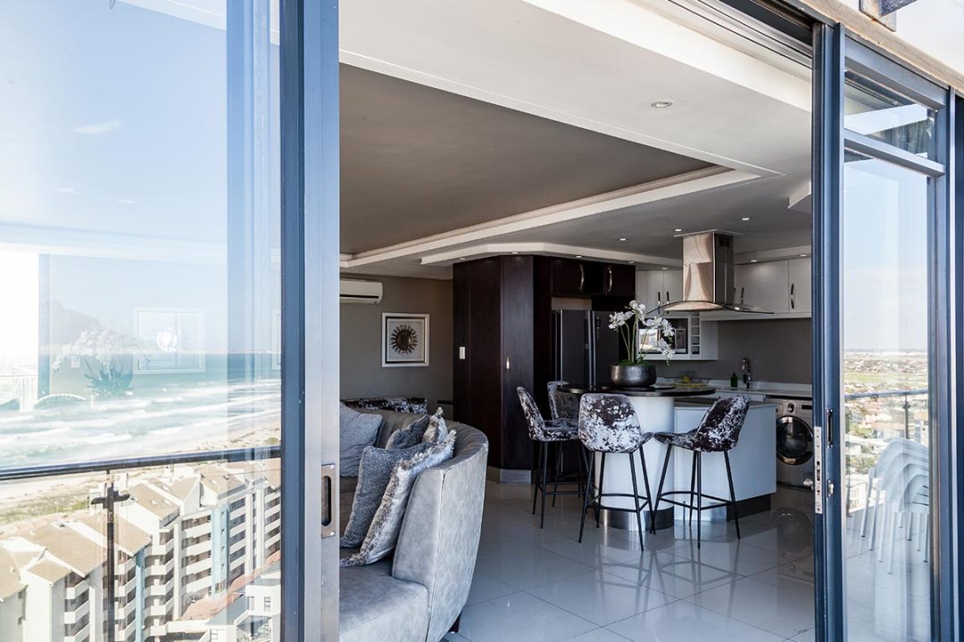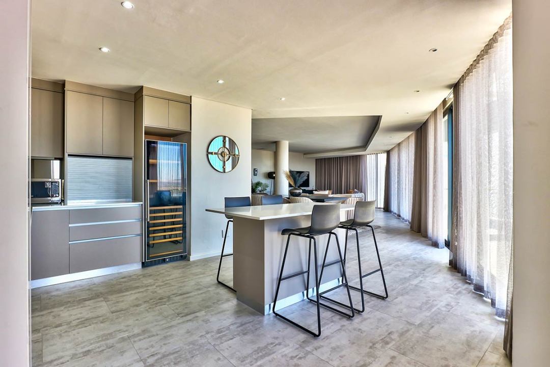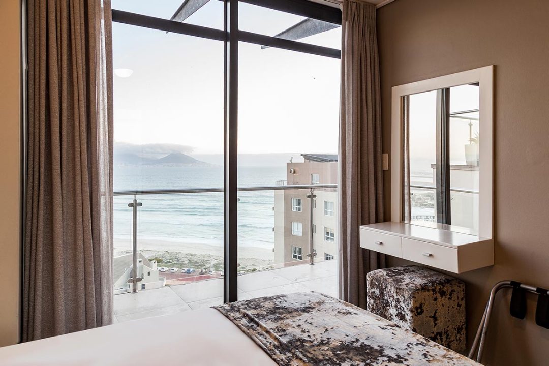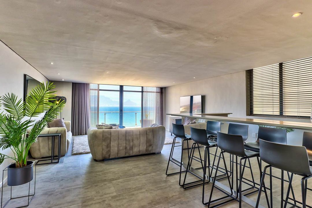 Our Three Bedroom Luxury Suites with their modern beach-inspired décor and luxurious finishes are well equipped for families or a group of friends looking to enjoy a beach and city getaway. Guests can choose between a 5- or 6-sleeper suite. Each suite has a luxurious lounge area, a fully equipped kitchenette, plus a beautiful balcony where you can soak up the views over Blouberg, with a partial sea view. This is the perfect place to enjoy a morning cup of coffee or a sundowner at the end of the day.