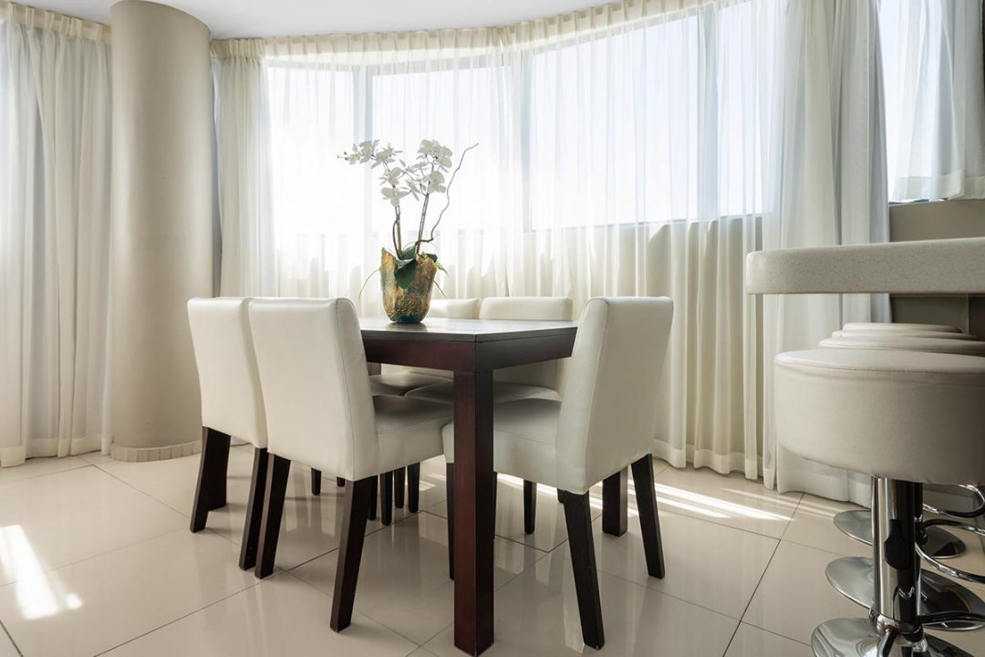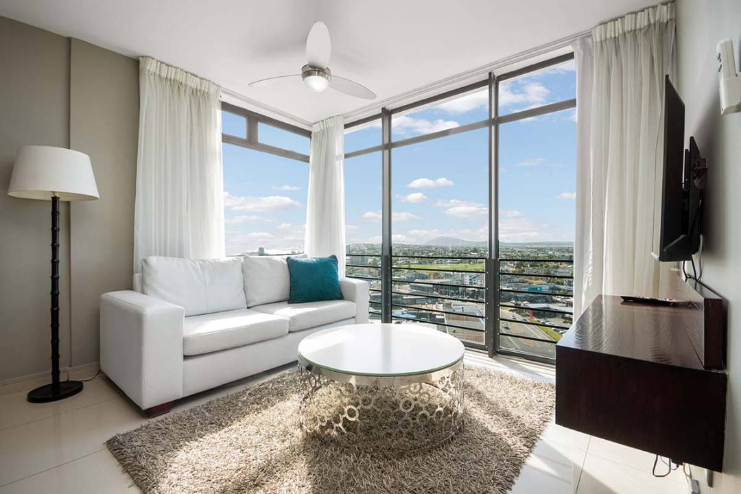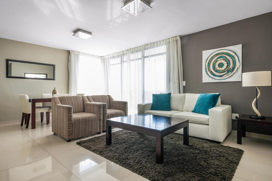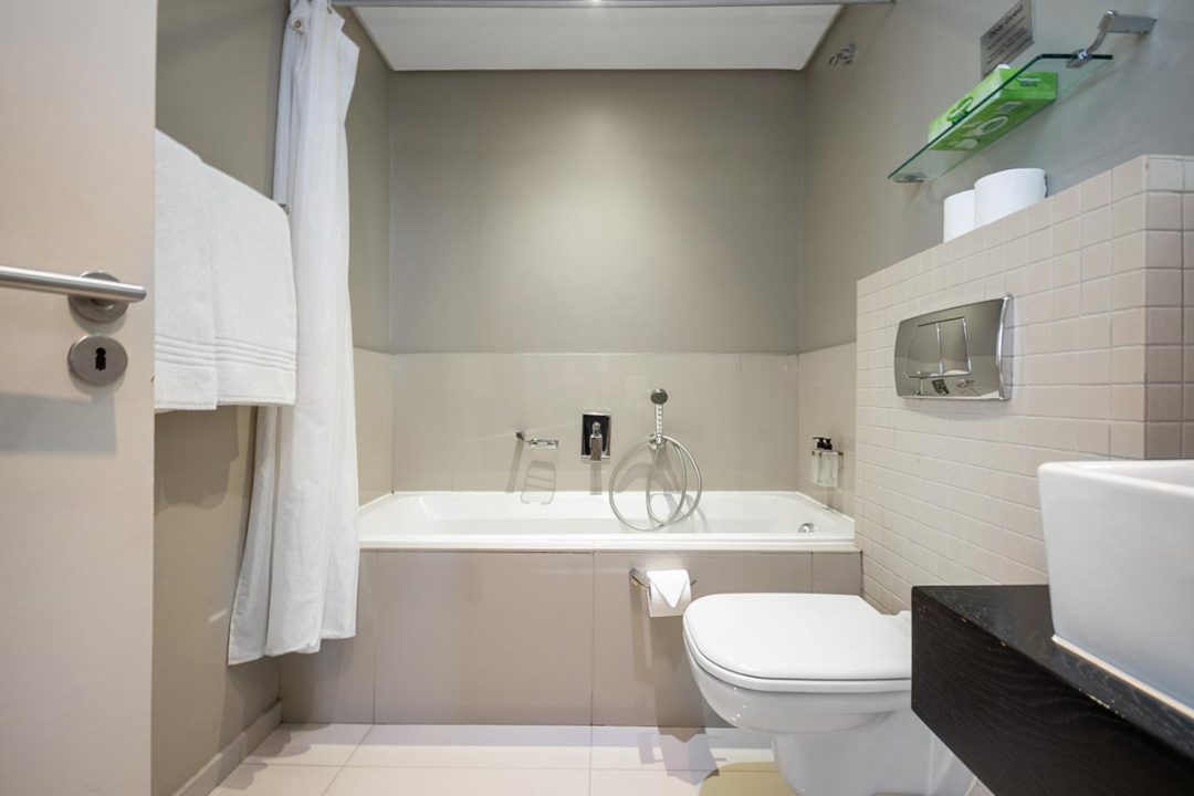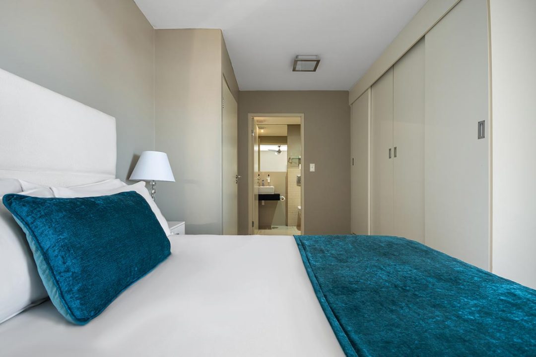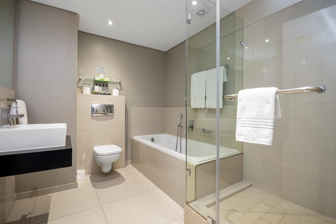 Enjoy a good night’s rest after a busy day of work or play in your elegantly furnished bedroom with a quality double bed, luxury linens, and spacious en suite bathroom with contemporary finishes. All suites are fully air-conditioned and serviced every day, and include a flat screen TV, free Wi-Fi, and come with secure parking