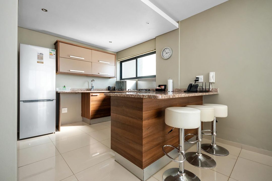 Our One Bedroom Luxury Suites with their modern beach-inspired décor and luxurious finishes are well equipped for business and leisure travellers – and are the perfect destination for couples wanting to enjoy a romantic getaway. Each suite has a luxurious lounge area, a kitchenette for simple meal prep, plus a beautiful balcony where you can soak up the views. This is the perfect place to enjoy a morning cup of coffee or a sundowner at the end of the day.