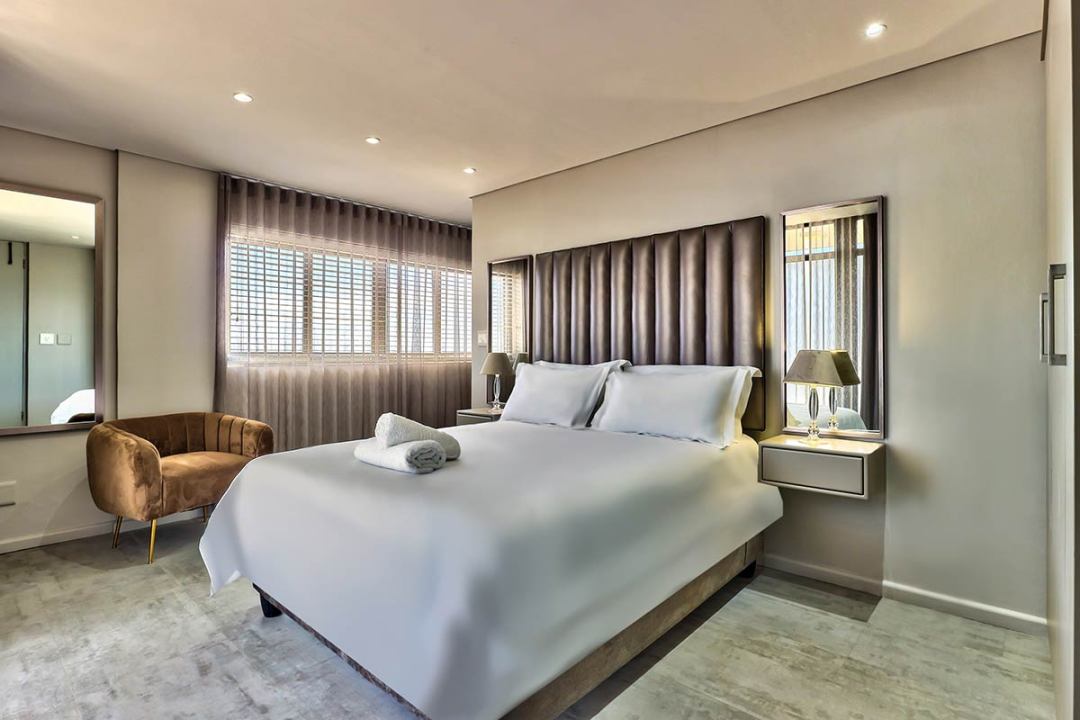 The Penthouse Suite is fully air-conditioned and serviced every day, and includes a flat screen TV, free Wi-Fi and comes with secure parking. Guests will also enjoy access to the onsite gym and hairdresser plus our magnificent rooftop pool and deck boasting Instagram-worthy views of the Atlantic Ocean and Cape Town’s famous Table Mountain.