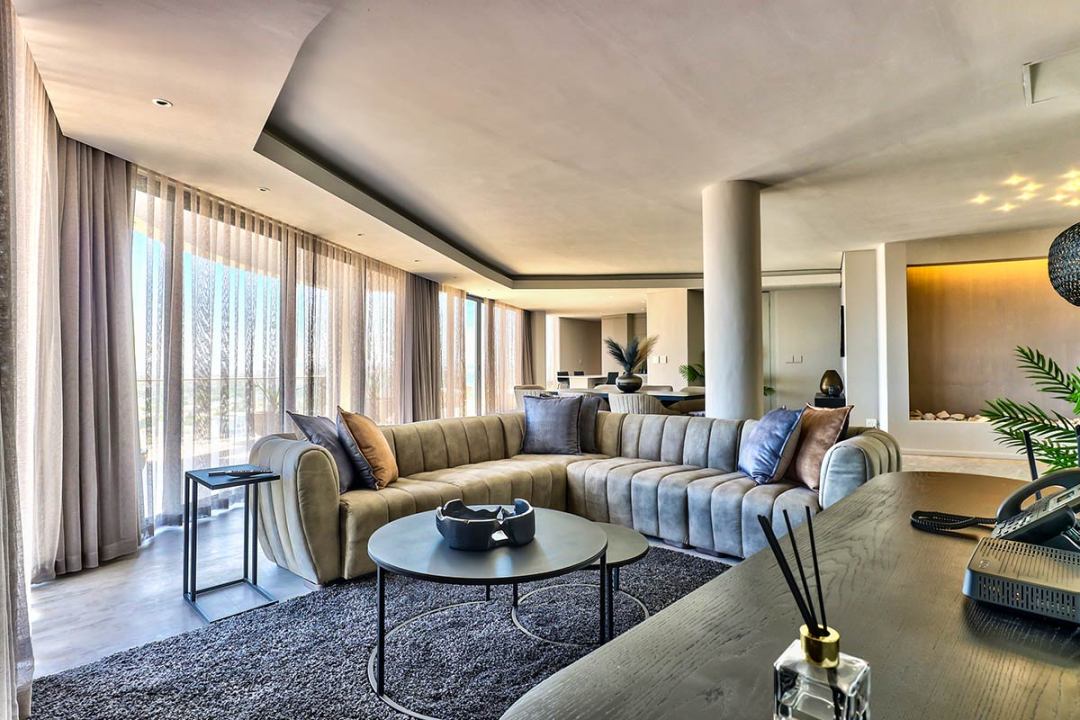 Our Penthouse Suite boasts high-end modern beach-inspired décor and luxurious finishes and has a spacious, beautifully furnished lounge area for relaxing, a fully equipped kitchenette, plus a spacious balcony with breath-taking views. This is the perfect place to enjoy a morning cup of coffee or to toast the sunset at the end of a memorable day.