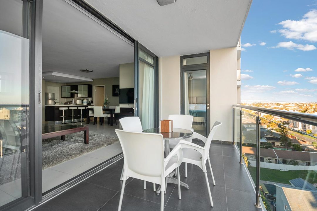 Our Two Bedroom Luxury Suites with their modern beach-inspired décor and luxurious finishes are well equipped for families or a group of friends looking to enjoy a beach and city getaway. Each suite has a luxurious lounge area, a kitchenette for simple meal prep, plus a beautiful balcony where you can soak up the views. This is the perfect place to enjoy a morning cup of coffee or a sundowner at the end of the day. Guests can choose between a suite with a stunning sea view, or a view over Blouberg and partial ocean view.