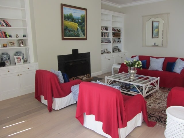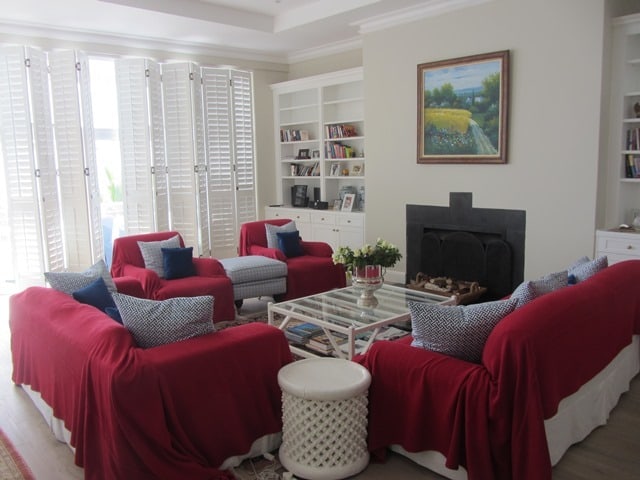 – the couches are covered with red blankets at the moment because of the owner’s small kids but the covers will be removed when client arrives, couches are white