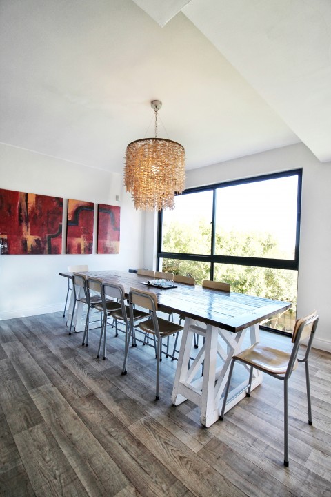 - Indoor dining area includes 8-seater dining table