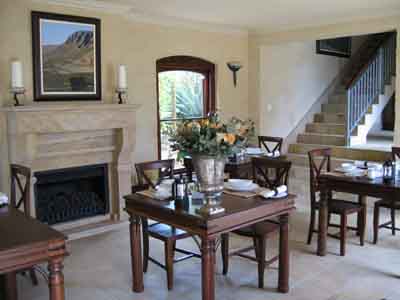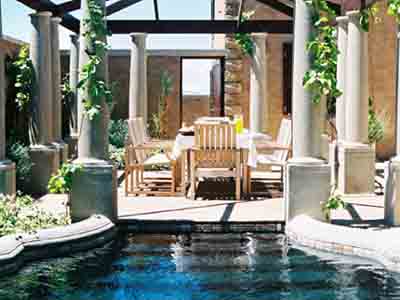 Built around a romantic central courtyard, boasting a charcoal and travertine pool and bronze sculptures. Enjoy sumptuous breakfasts under a grapevined terrace or on the seafront patio. Cool interiors and rich colours offer a haven of great charm and style. Classic decor, South African works of art and large stone fireplaces impart a sense of timeless, luxurious elegance.