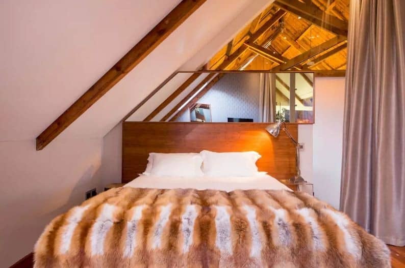 Bottom level consists of bar, open plan lounge area with large 55” LED TV, wood burning fireplace, 6-seater dining table (expandable to seat 12 guests), fully fitted kitchen, separate scullery and full laundry. The second bedroom with king size extra length bed, TV, and en-suite bathroom with large wood-cladded walk-in shower.