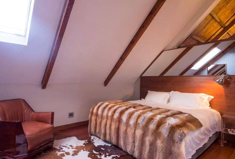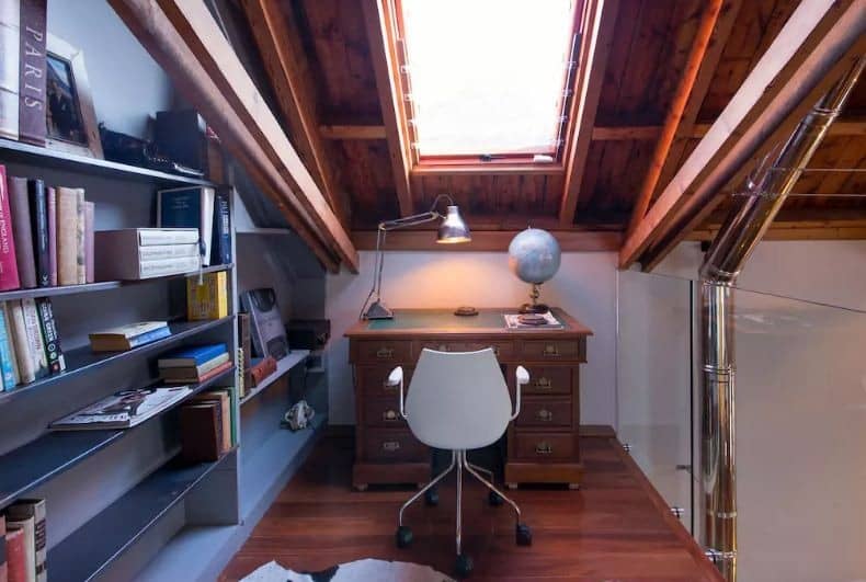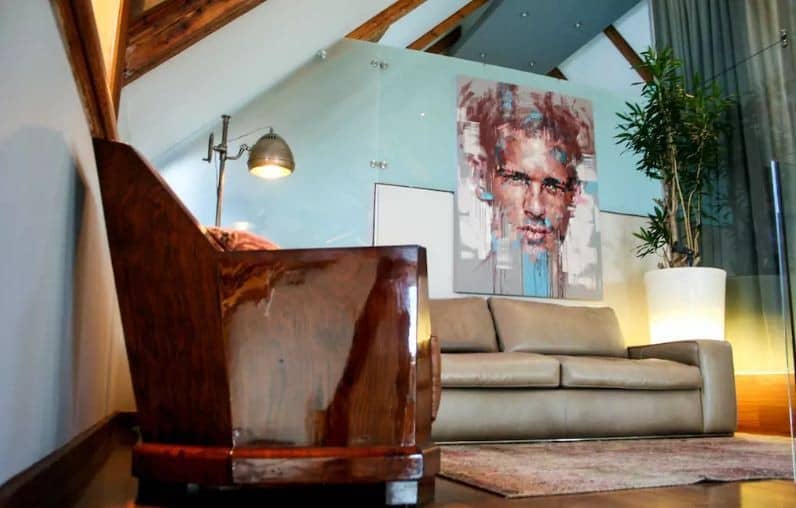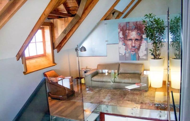 Mezzanine lounge is open space with sofa and chair looking down on the main area downstairs. Perfect for chilling and reading.