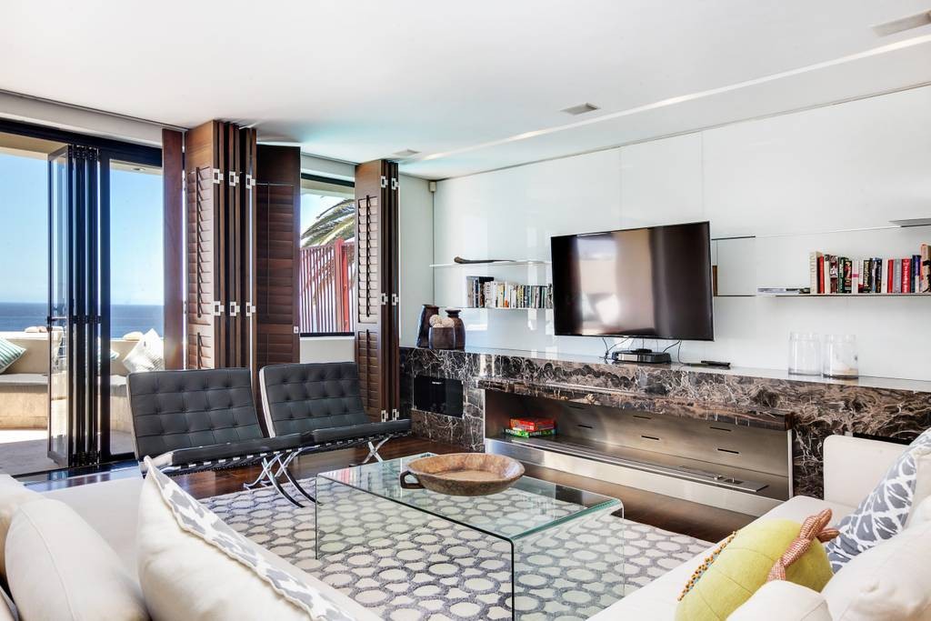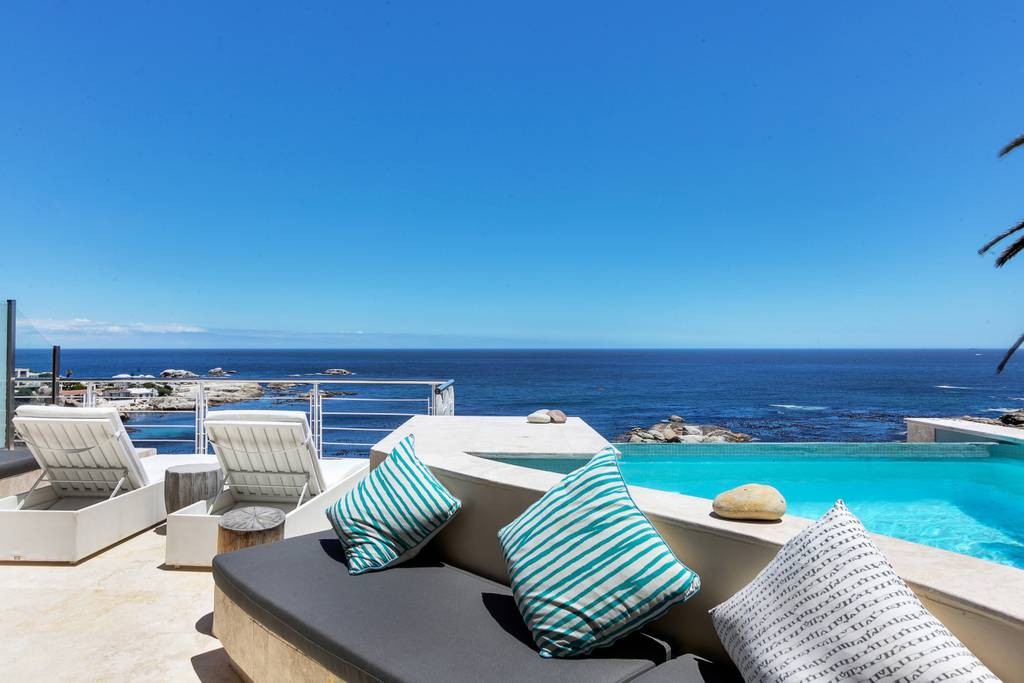 This gorgeous two storey penthouse offers spacious living areas, an outdoor terrace and exceptional ocean views. The interior is decorated with rich colours that create a warm and welcoming space. The main living area is open plan with a fully equipped kitchen, breakfast bar and Nespresso machine, dining area which seats 8 guests and a separate TV lounge. Upstairs is the main bedroom, with a King-size bed, en-suite bathroom and a private balcony with magnificent sea views. The second bedroom has twin beds and a dedicated bathroom and the third bedroom has a Queen-size bed and an en-suite bathroom with courtyard access and partial mountain views. The terrace is the perfect place to be whether it’s soaking up the sun, cooling off in the pool or marvelling at the picturesque sunsets. There is also a Weber BBQ and seating so that you can dine al fresco.