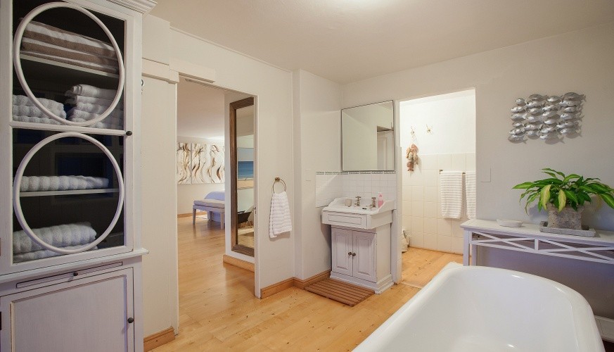 With its white shutters and white wooden ceilings the open plan kitchen, dining room, lounge is exactly what is needed to spark off your holiday. Dreamy cushy beds and sofas, wonderful baths to soak in. Sit out under candlelight and listen to the sea.
