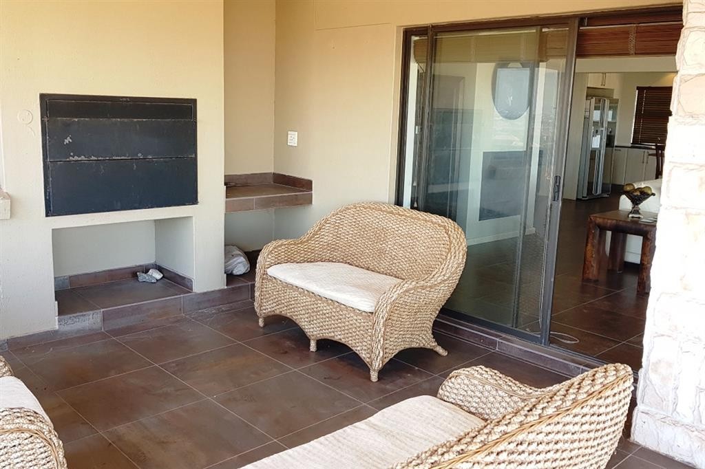 This lovely double storey house is modern, spacious, comfortable and stylishly furnished with quality furniture. The house enjoys lovely sea and fairway views from both floors, but especially so from open living area and large sheltered stoep on the 1st floor.