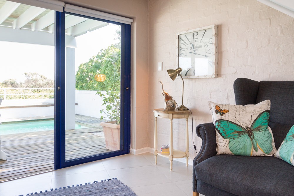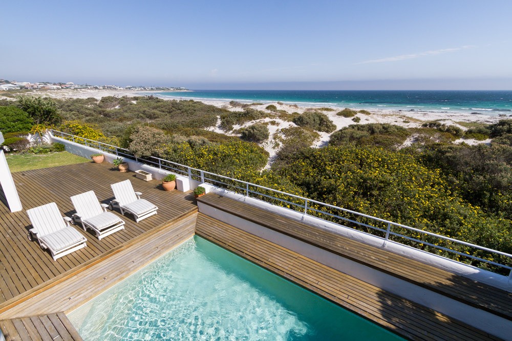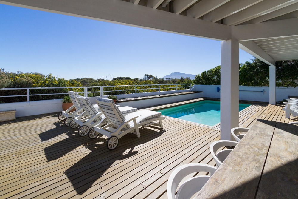 The covered patio with large outdoor table provides you with plenty of opportunity to entertain, sheltered from the Cape summer wind. Just relax at the pool and enjoy the views of the ocean and mountain. Beach Haven has a gate from the garden taking you straight onto the beautiful beach of Kommetjie.