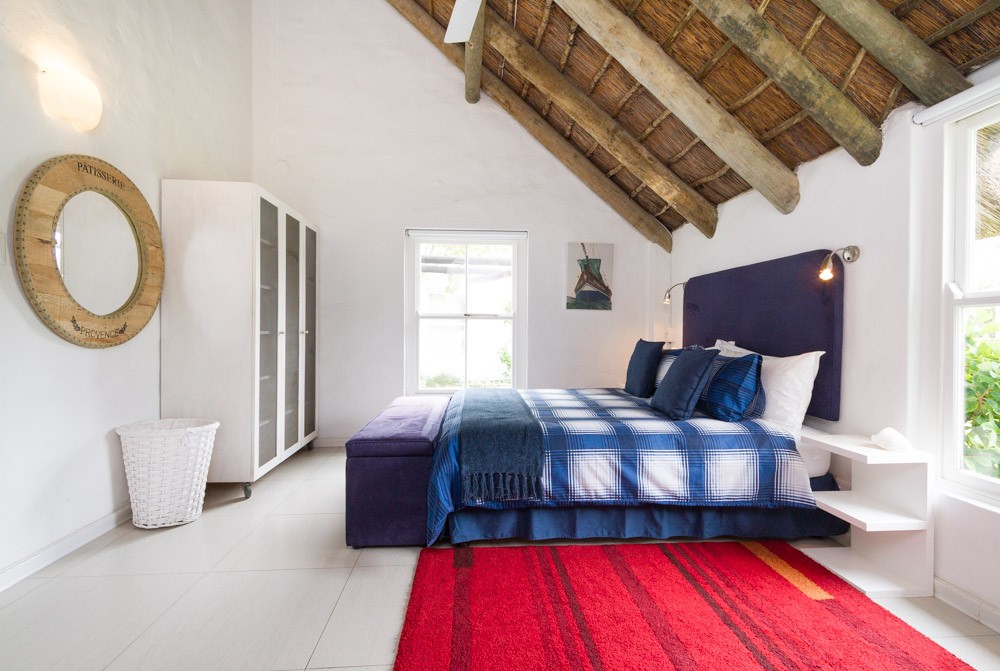 This stunning double story thatched villa offers you every comfort needed for a fantastic holiday at the beach, with direct access to the beach. Beach Haven has Kommetjie’s entire peaceful beach with white sand and blue oceans, you can’t get better than this! Upstairs is a modern lounge with thatched ceilings and large custom made leather corner couch, with stunning sea views from every angle. Sliding doors lead onto a large deck with outdoor seating, comfortable sunbeds with and the most spectacular views and sunsets over the Atlantic Ocean.