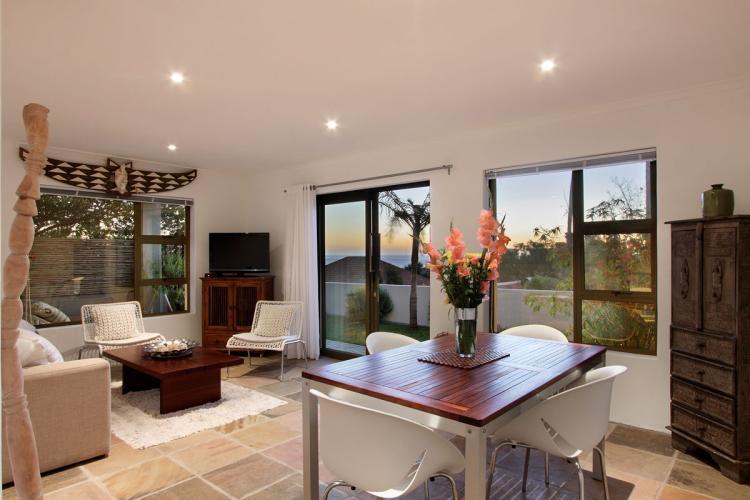 Camps Bay, in general, is quite vibrant, especially in season. The apartment is private, being elevated above the road and having an undercover outdoor patio.