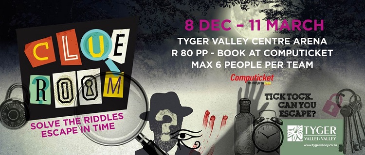 For something different, Tygervalley Mall offers plenty of mystery and intrigue all weekend with their not-to-be-missed Clue Room 2. This mystery escape game offers 60 minutes of fun, as you put all your wits to the test. There are two rooms on offer: “Zombie Apocalypse” and “The Mysterious Amulet of Garvey Lytle”. The object is to find your way out of a locked room, using the clues provided. To play, you will need to get a group of 4 to 6 players together and book a session. Each session costs just R80 per person. This game is ideal for celebrations, but it’s also a rewarding way to get thinking this weekend. Bookings are essential. Visit www.tygervalley.co.za/event/clue-room/30087 for more information or book via Computicket now!