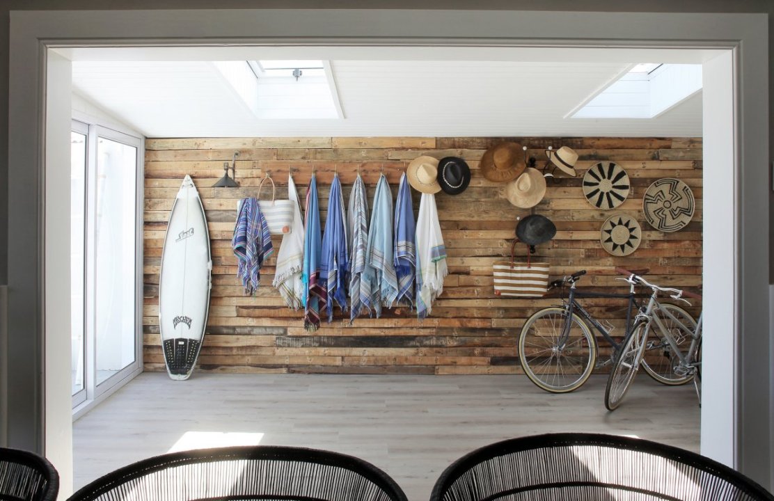 Entering through the reclaimed rustic front door leads you into a spacious foyer offering the first glimpse of the splash pool and ocean beyond.