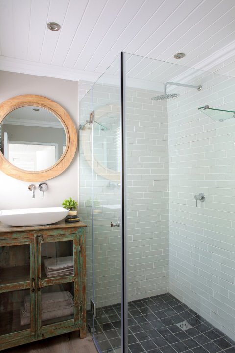 On the ground level you will find 2 bedrooms – the first with a Queen bed and the second with 2 single beds (can be converted into a king by prior request). One of the rooms is ensuite and the second has a separate bathroom right next door. Both bathrooms have walk-in showers.