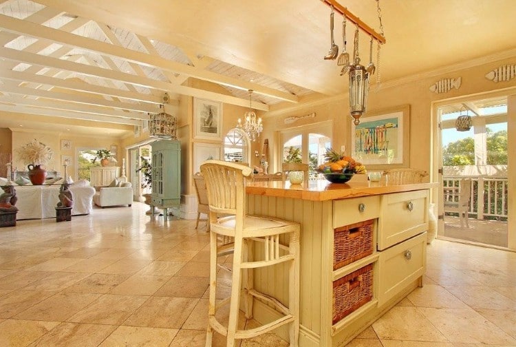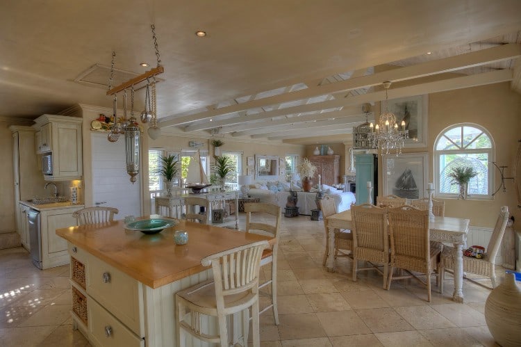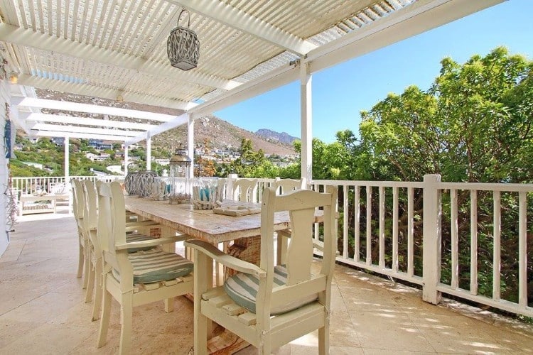 Gorgeous, spacious, light and airy open plan reception with exposed whitewashed beams, tongue and groove detail and travertine floors with Lounge & Dining area and superb kitchen all leading to a huge travertine deck with coffee table and four deck chairs with cream seats and cushions plus large cream sun umbrella. This terrace also has a large whitewashed dining table with seating for 8 and a built in BBQ for al fresco dining. Wi-Fi, Dual DStv decoder, DVD and CD sound system, under floor heating and telephones.