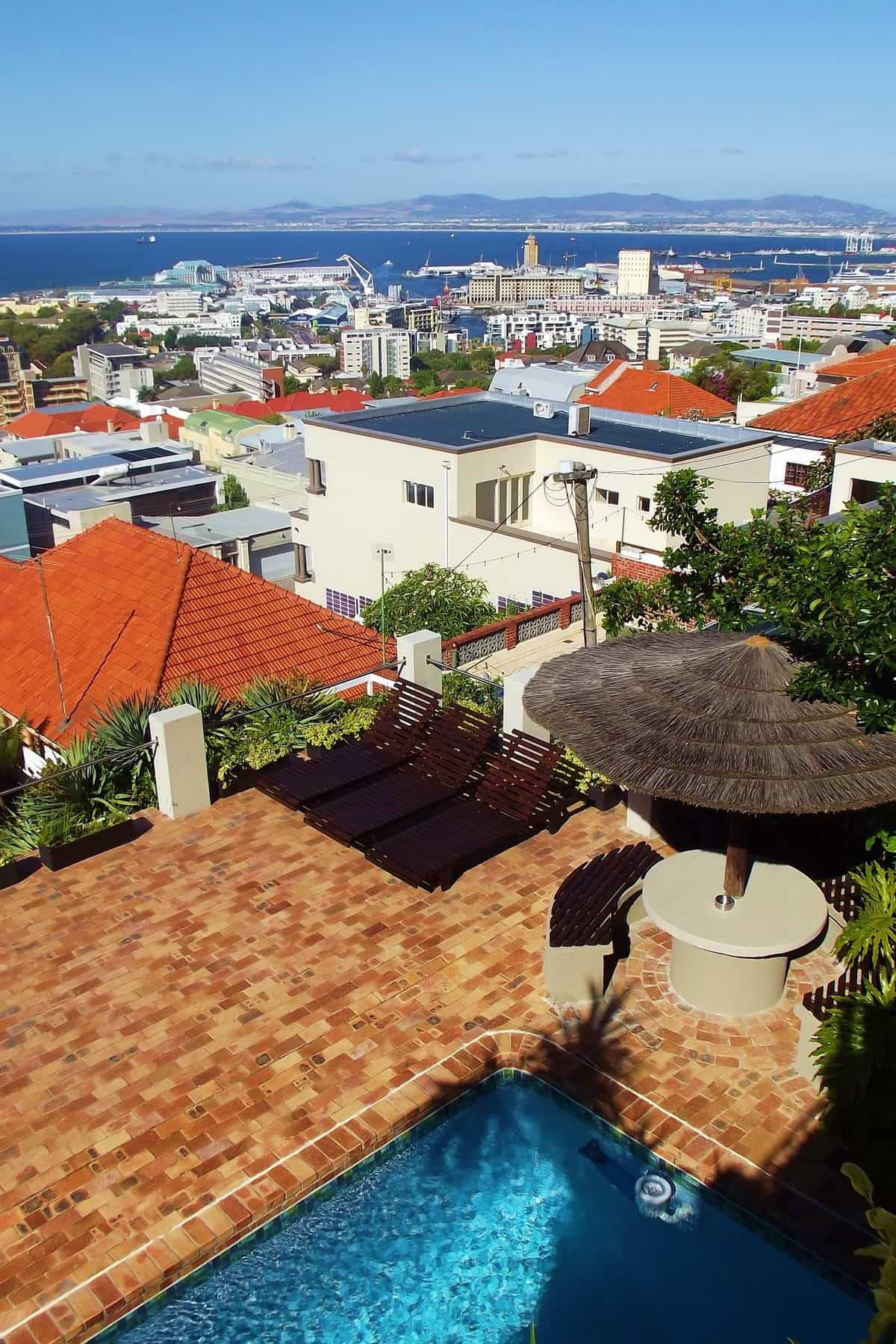 Bluegum Hill Guest House offers serenity and tranquillity close to the heart of the Mother city. Located high up on Merriman Road, a peaceful cul de sac, below the Signal Hill Nature Reserve where you can delight in indigenous Bluegum trees, aloes and guinea fowl. A two minute drive can lead you to explore South Africa’s historic Mother City. The city offers various attractions such as markets, shops, restaurants, museums, the Planetarium, the Castle and the renowned Company Gardens.